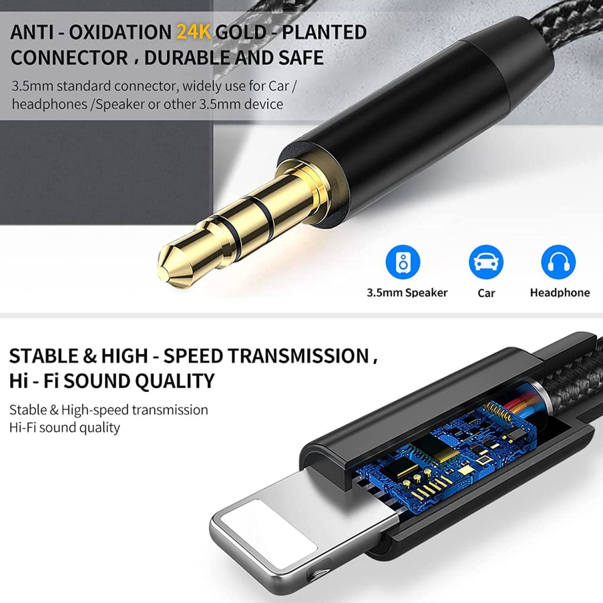 | Type : Lightning vers mini-jack 3,5 millimètres MÂLE | |