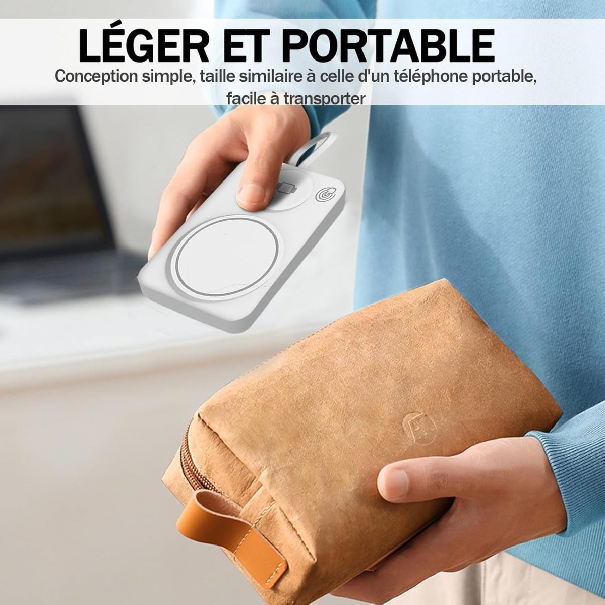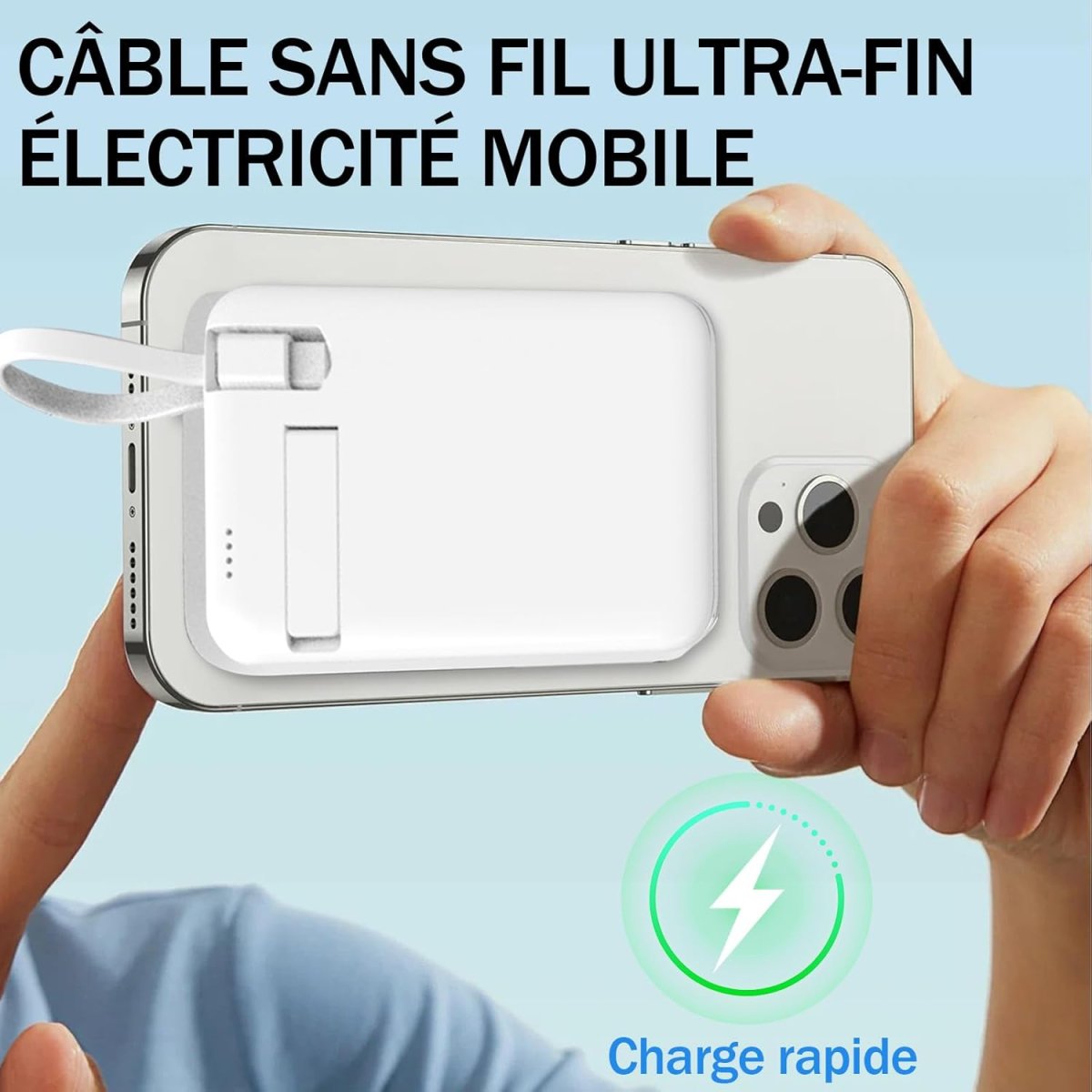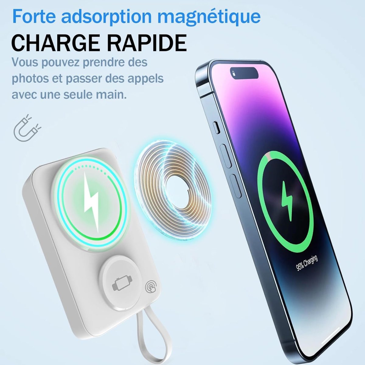 | Sorties : USB-C et recharge sans fil magnétique | |