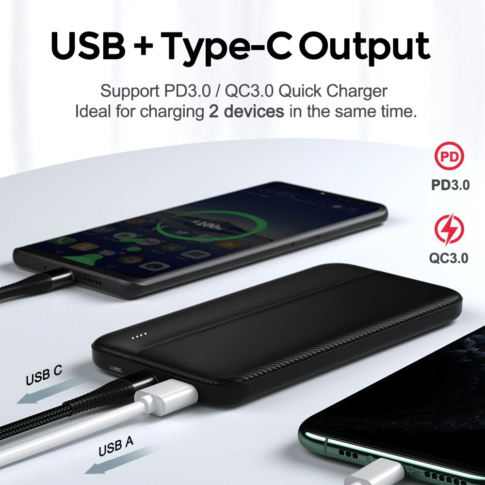 Le Noir est une couleur classique mais toujours élégante et s’accorde parfaitement avec notre Batterie Externe de 10 000 mAh . Elle a pour particularité de recharger et se recharger rapidement grâce aux technologies PD 3.0 et QC 3.0