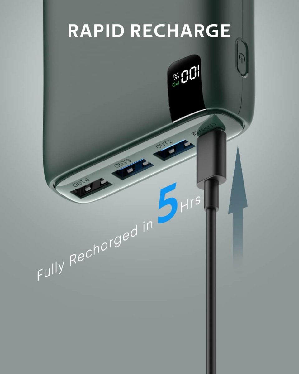 4. Charge rapide 2,5X 🔥 Associez notre batterie externe avec un chargeur USB C de 20 W pour un temps de charge encore plus rapide. En seulement 5 heures ou moins, vous pouvez recharger complètement la batterie, réduisant ainsi considérablement le temps d’attente pour une recharge complète. De plus, notre batterie externe est équipée d’une protection intelligente contre les pannes de surcharge, la surchauffe et plus encore, assurant la sécurité de vos appareils.