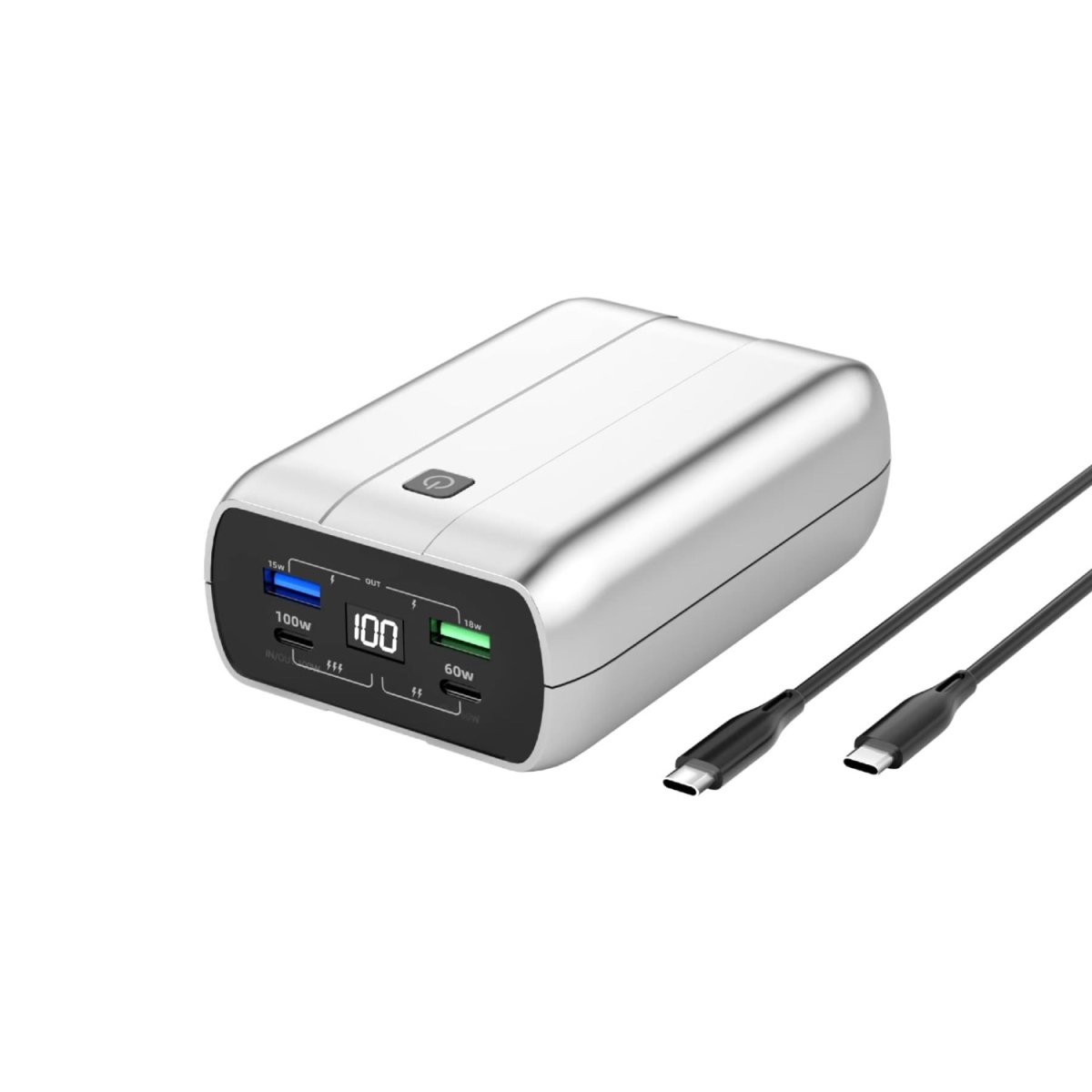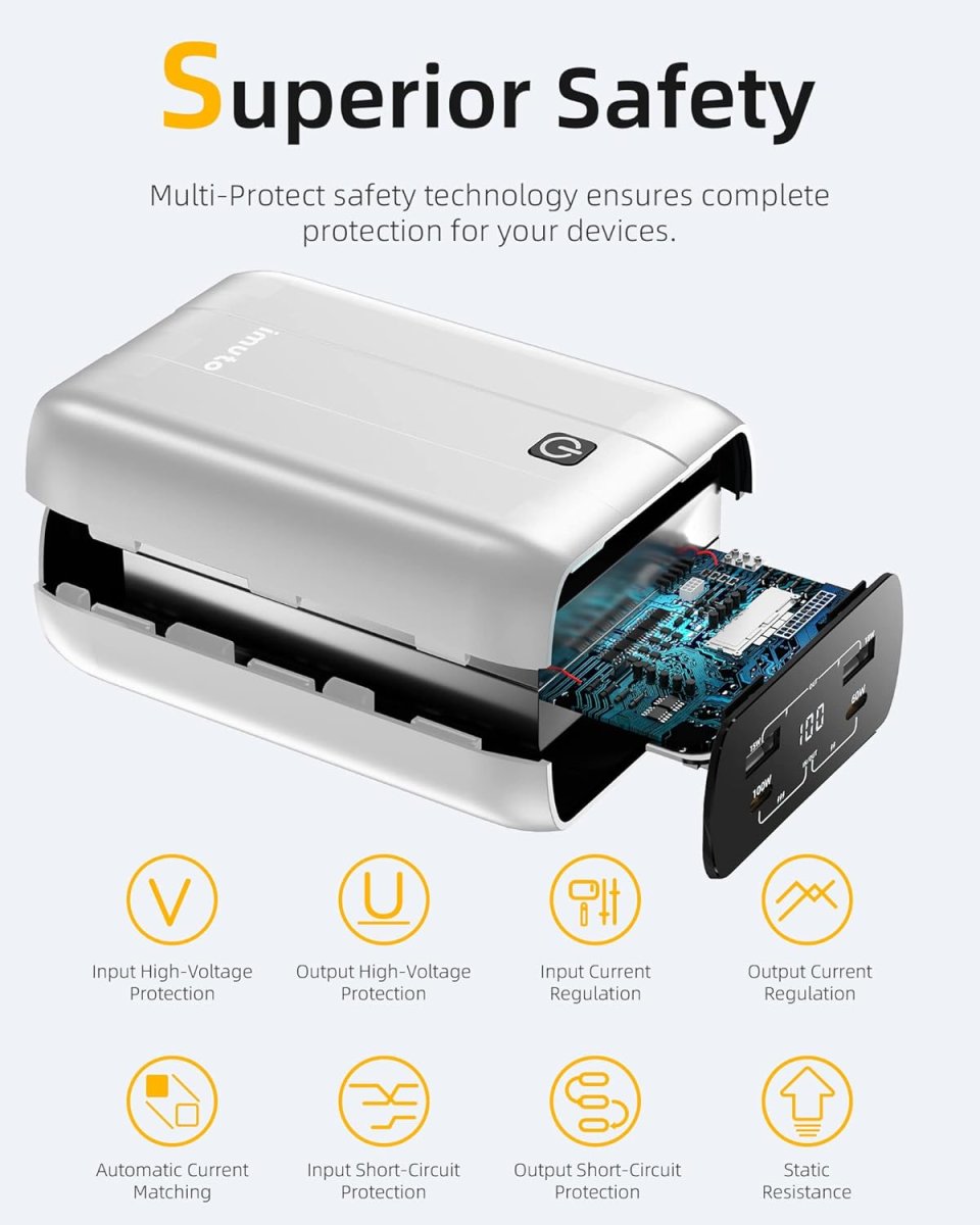 Notre batterie dispose de 4 ports intelligents : 2 USB-C et 2 USB-A, vous permettant de recharger simultanément jusqu’à quatre appareils, y compris smartphones, tablettes, ordinateurs portables et même caméras. Une solution idéale pour partager la puissance entre vos différents appareils ou avec vos proches.
