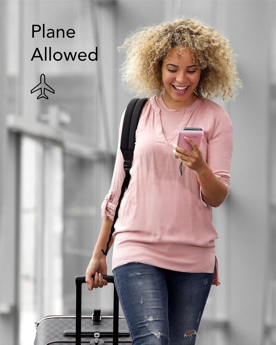 Avec des dimensions de 162 × 91.8 × 15.5 millimètres et un poids de 338 grammes, cette batterie portable est parfaite pour vos voyages, respectant les normes de transport aérien.