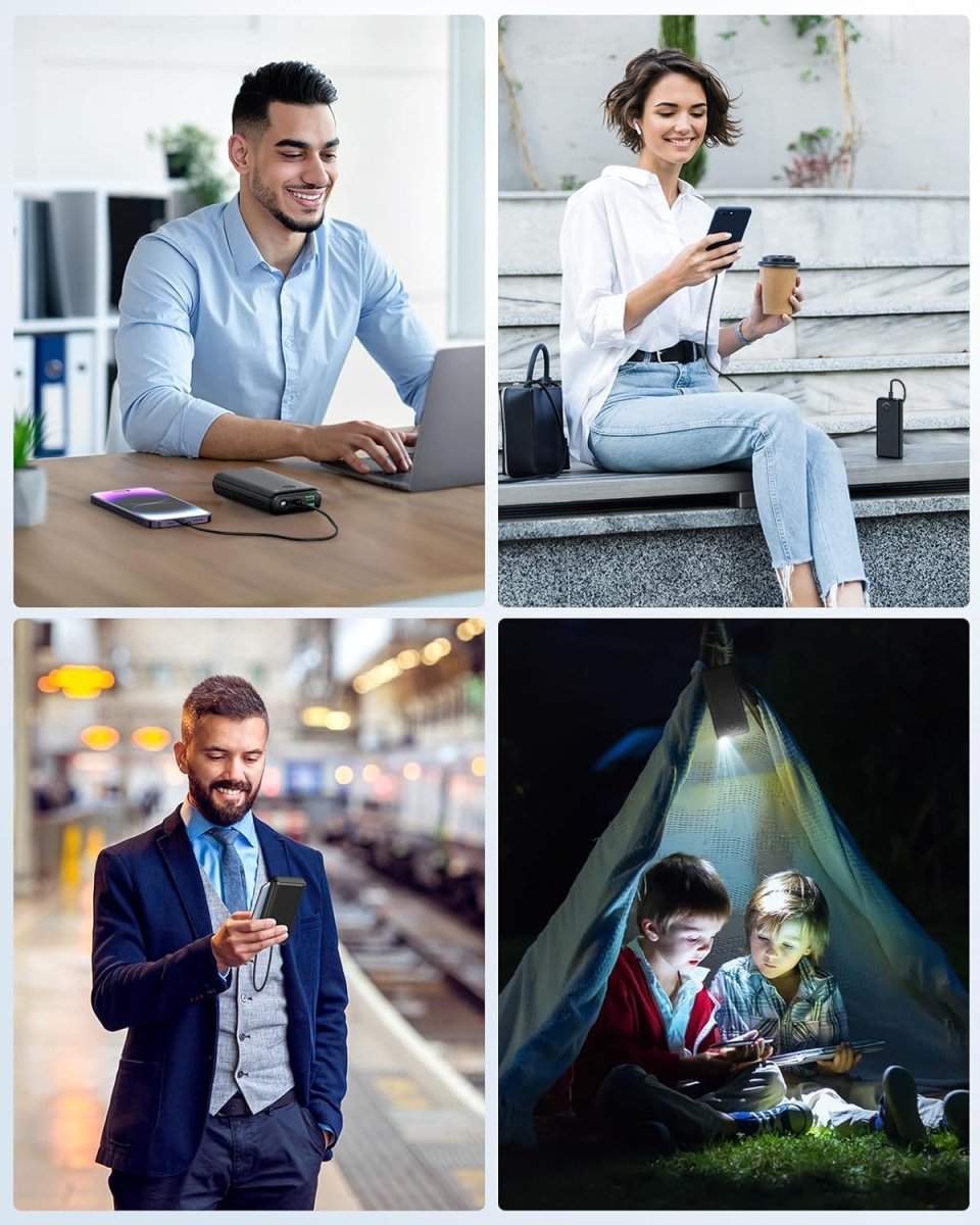 Notre batterie externe 27000mAh combine puissance et praticité pour accompagner vos déplacements au quotidien. Grâce à sa capacité élevée et à sa charge rapide, elle garantit de multiples recharges pour vos appareils, que ce soit en voyage, en extérieur ou en situation d’urgence.