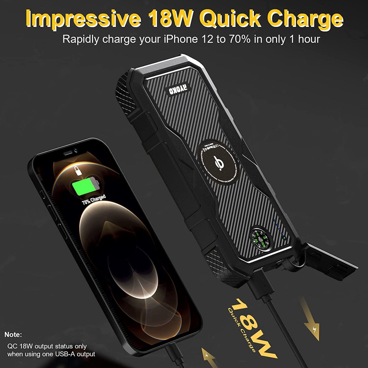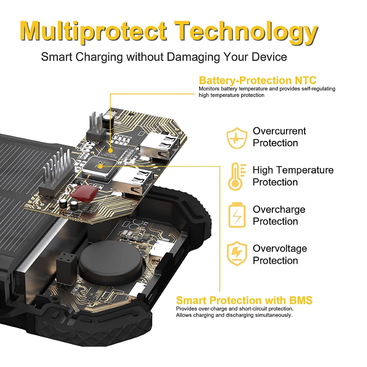 Réfléchie pour les plus fans du plein air, elle est certifié IPX6, ce qui signifie qu’elle est résistante aux chutes, à la saleté et qu’elle est partiellement étanche (résiste aux jets d’eaux) . Ses finitions sont robustes et caoutchoutées, afin de la rendre le plus durable possible et de résister aux rudes conditions extérieures. Elle a la capacité de se recharger et de recharger vos appareils rapidement, grâce à sa double entrée unique de 4 Ampères elle se recharge entièrement en seulement 8 heures (soit jusqu’à 50% plus rapidement que les autres marques