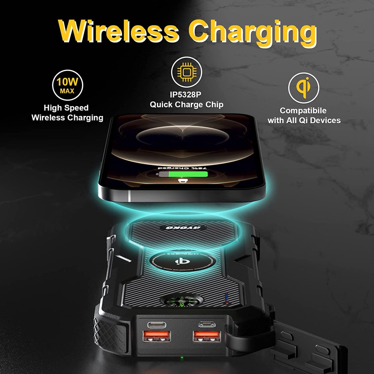 Batterie Portable Solaire Étanche 26800mAh