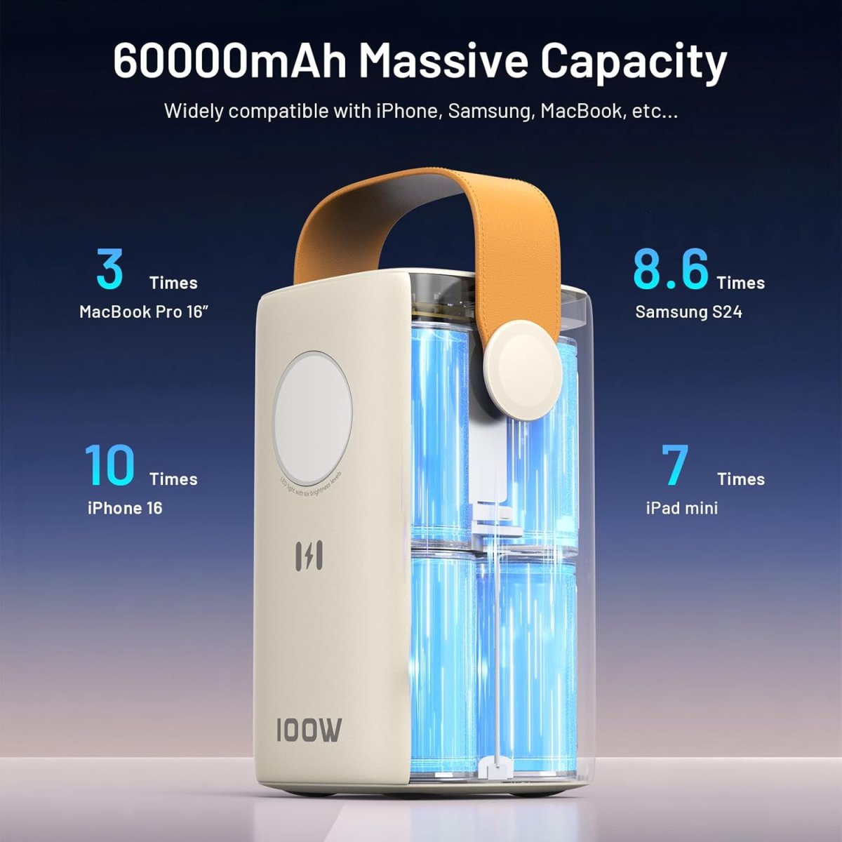 | Capacité : 60 000 mAh pour recharge multiple | |