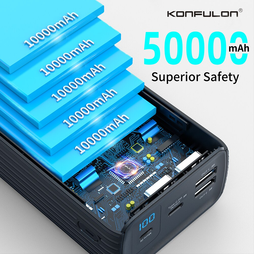 Power Bank de 50000 mAh avec port USB Type-C de 18/20 Watts Rapide