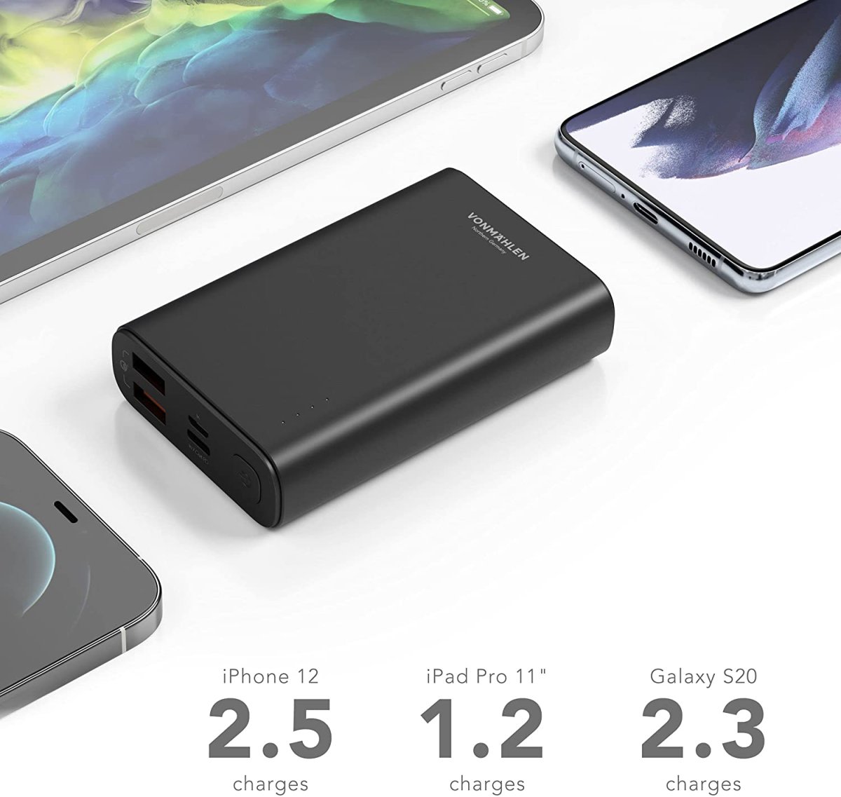 La Batterie Externe VONMAHLEN de 10 000 mAh dispose de la Charge Rapide 3.0 permettant notamment de recharger un téléphone de 0% à 51% en seulement plus ou moins une demi heure ⚡. Confiant de la qualité de nos produits, une garantie de 3 ans est offerte à l’achat de ce produit et un service client reste à votre disposition en cas de quelconque problème .