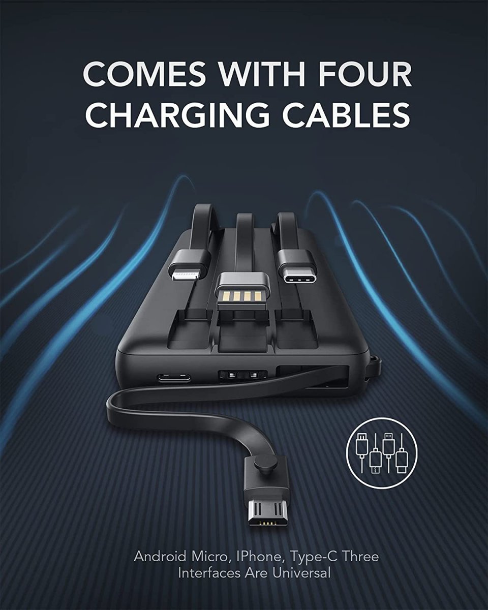 La Batterie de Secours VRURC de 20000 mAh dispose de 4 câbles intégrés permettant de ne pas à avoir constamment un ou plusieurs câbles encombrants sur soi. Confiant de la qualité de nos produits, une garantie de 2 ans est offerte à l’achat de ce produit et un service client reste à votre disposition en cas de quelconque problème .