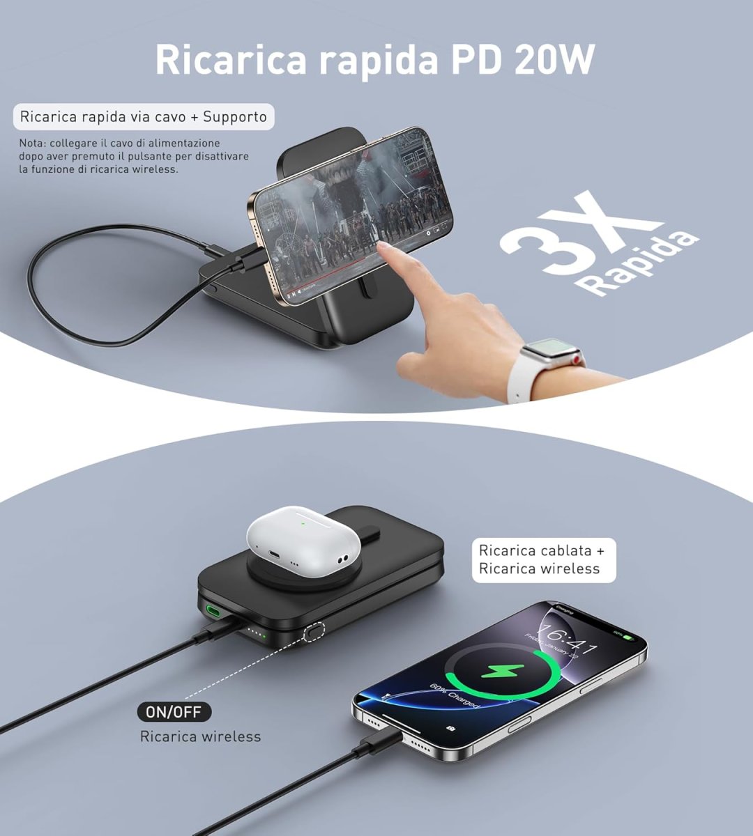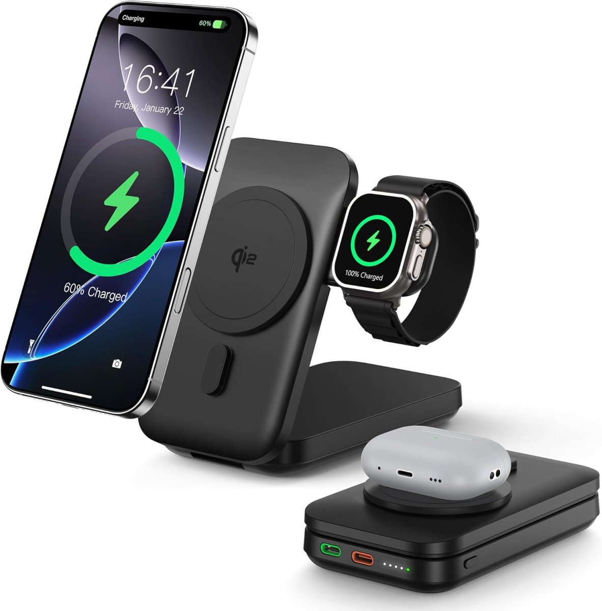 Notre solution d’alimentation portable intègre un système magnétique puissant pour maintenir votre appareil en place avec précision. Elle permet de charger simultanément plusieurs appareils, y compris les smartphones, montres et écouteurs, avec une efficacité maximale. La technologie sans fil garantit un positionnement stable et une charge rapide, tandis que les ports filaires offrent une compatibilité universelle et une vitesse accrue. Vous profitez ainsi d’une expérience de charge fiable, sécurisée et pratique au quotidien.