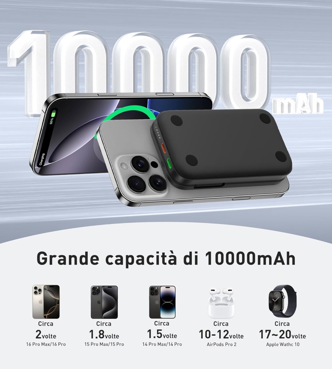 Notre batterie externe est conçue pour répondre aux besoins modernes de charge rapide et simultanée de plusieurs appareils. Grâce à sa capacité élevée et à la technologie magnétique avancée, elle garantit une alimentation fiable où que vous soyez. Compacte et efficace, elle permet de rester connecté sans interruption, que ce soit pour le travail, les loisirs ou les déplacements. Son design intelligent combine sécurité, rapidité et praticité dans un seul dispositif.