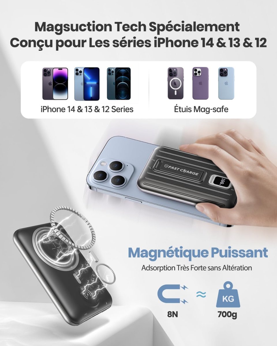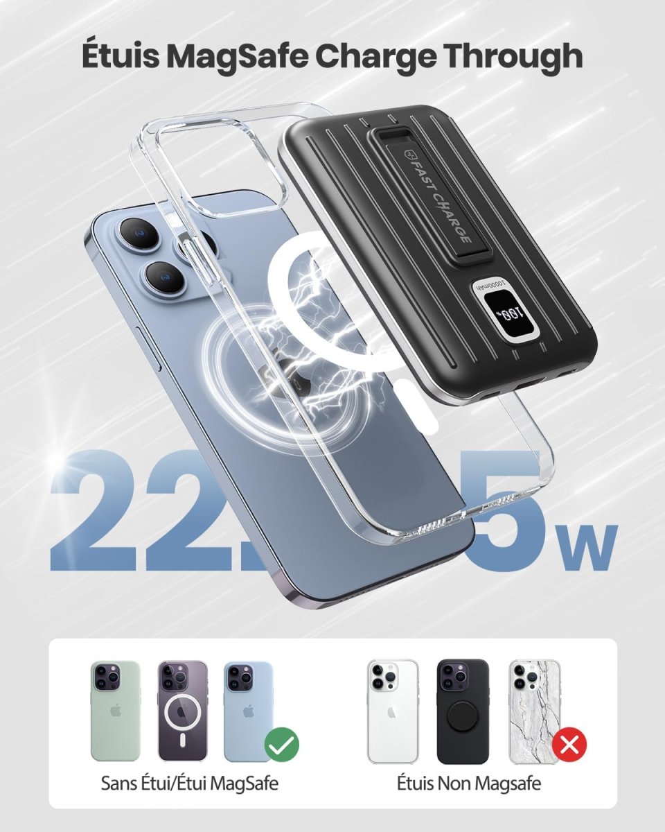 Batterie Externe Magnétique à Charge Rapide 22,5W