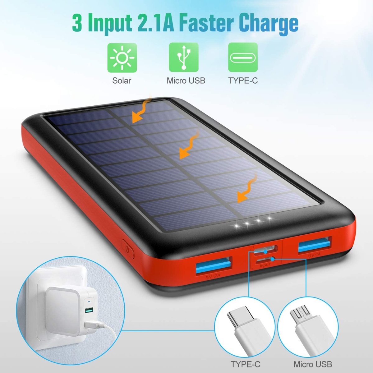 Le panneau solaire intégré vous permet de convertir la lumière du soleil en électricité, pratique pour les situations d’urgence lors de vos aventures en plein air. Cependant, il est recommandé de privilégier la recharge via un câble USB Type-C ou Micro USB pour une utilisation quotidienne, car la recharge solaire est plus lente.