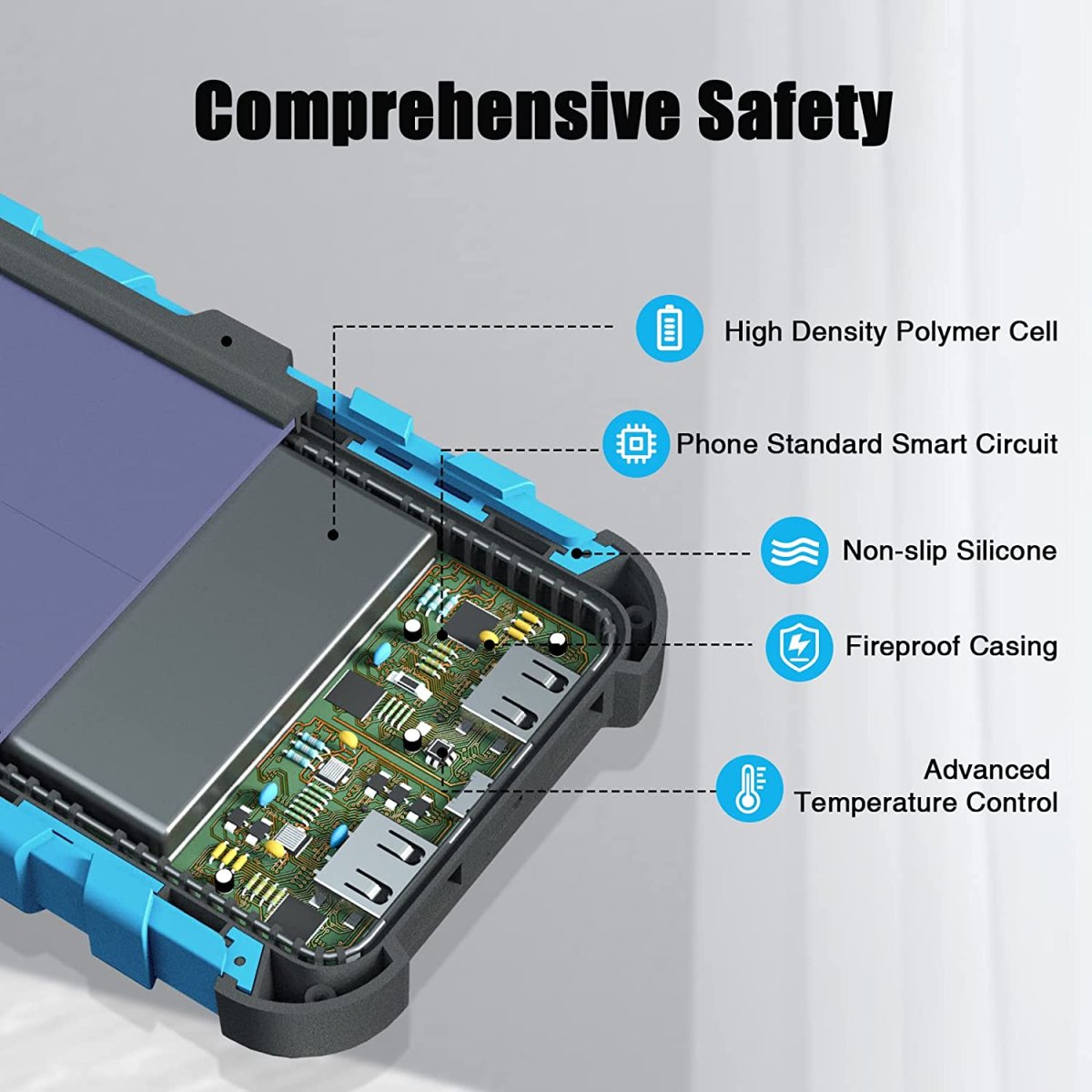 Fabriquée à partir de matériaux de haute qualité, tels que l’ABS, le silicone et le PC ignifuge, cette batterie est antichoc, étanche (IPX4) et résistante à la poussière, parfaite pour les environnements difficiles. Elle est conçue pour résister à toutes vos aventures en plein air, que ce soit sous la pluie ou dans la poussière.