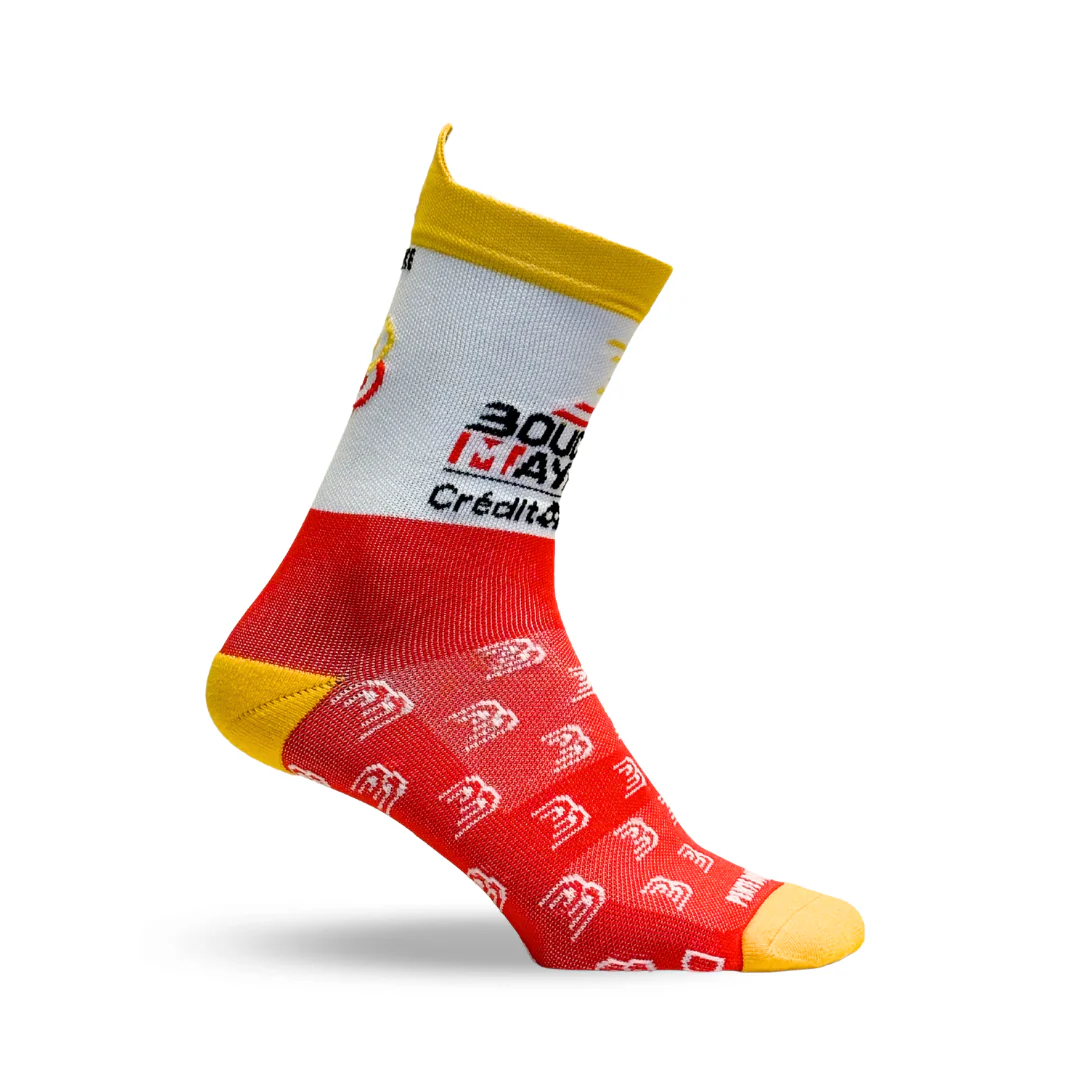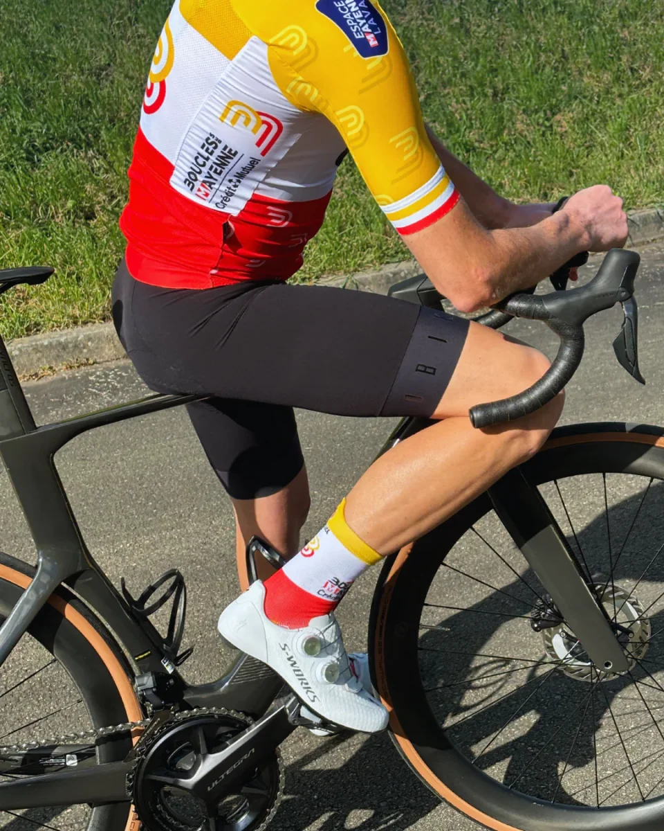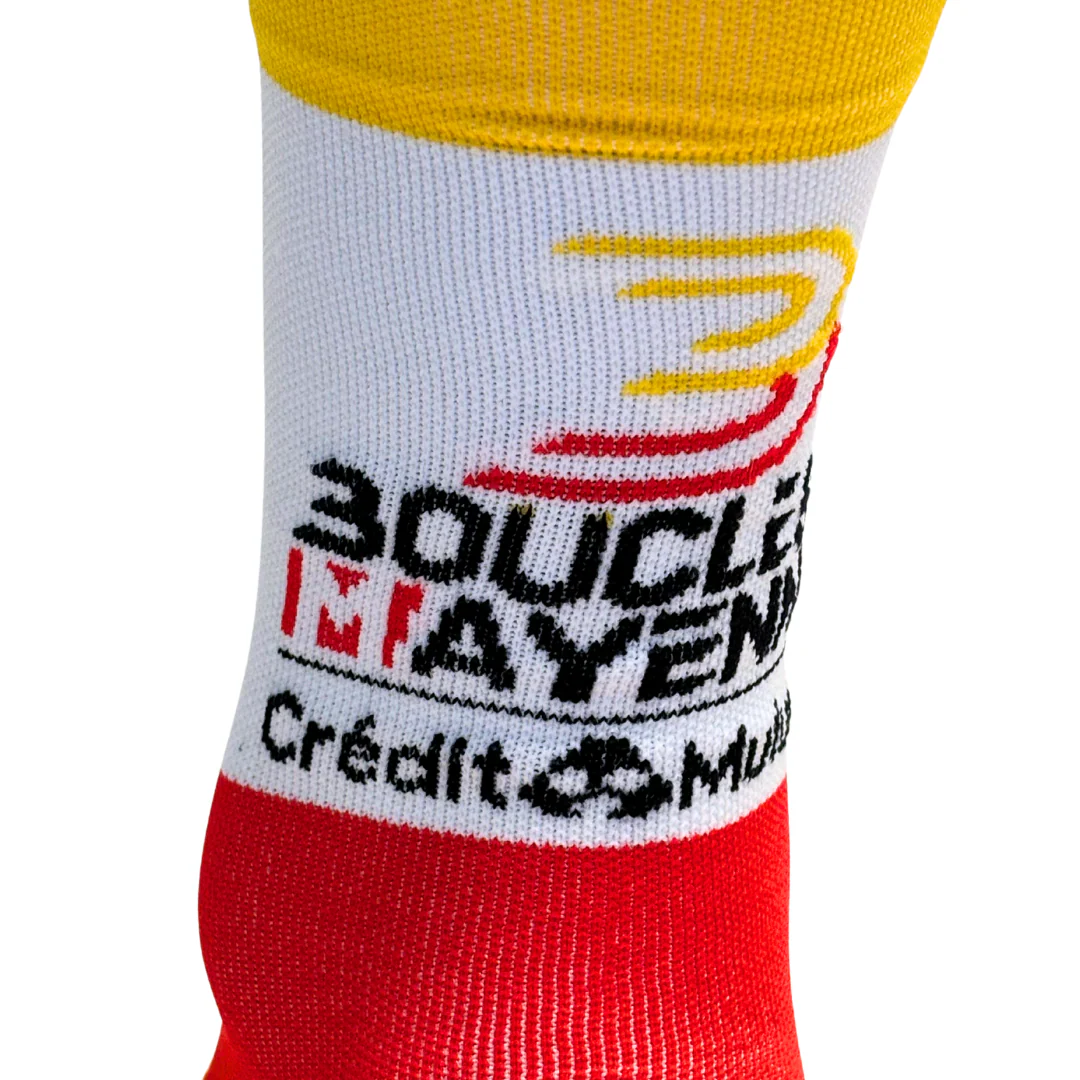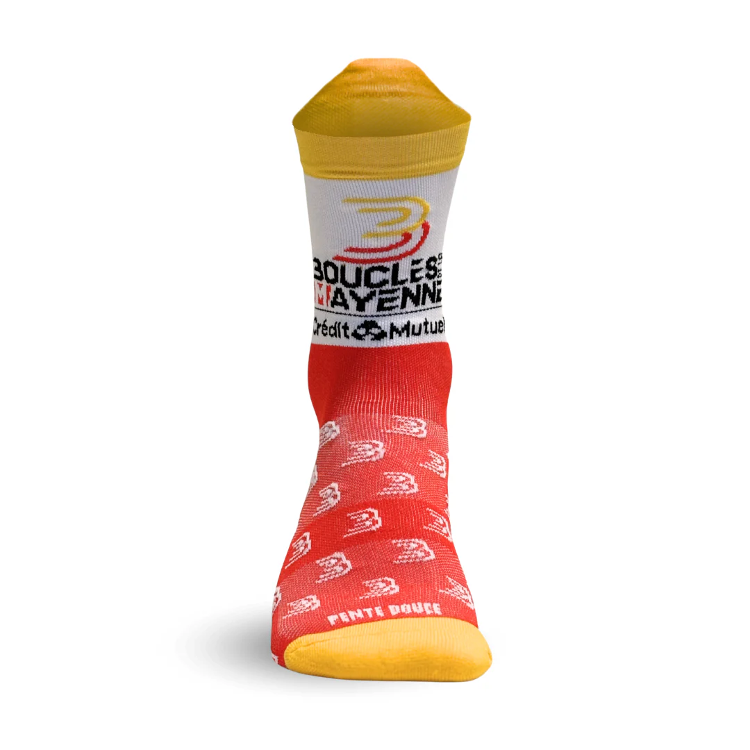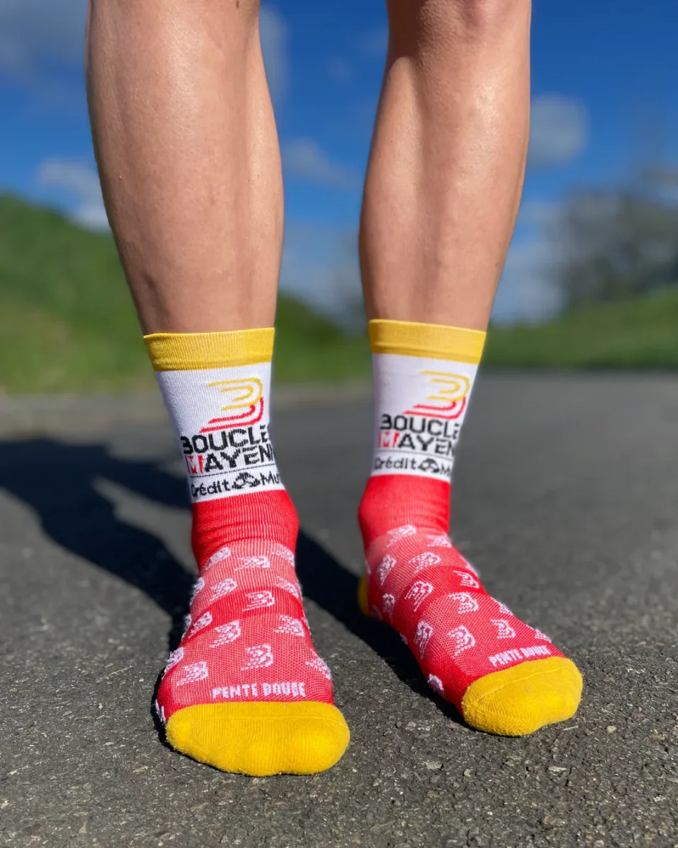 Pente douce et Boucles de la Mayenne lancent pour la deuxième année une paire de chaussettes de cyclisme à l’effigie des Boucles de la Mayenne ! Imaginées à LAVAL sur une terre de vélo, notre modèle est fabriqué dans le Limousin et composé à 59% de polyamide recyclé ♻️