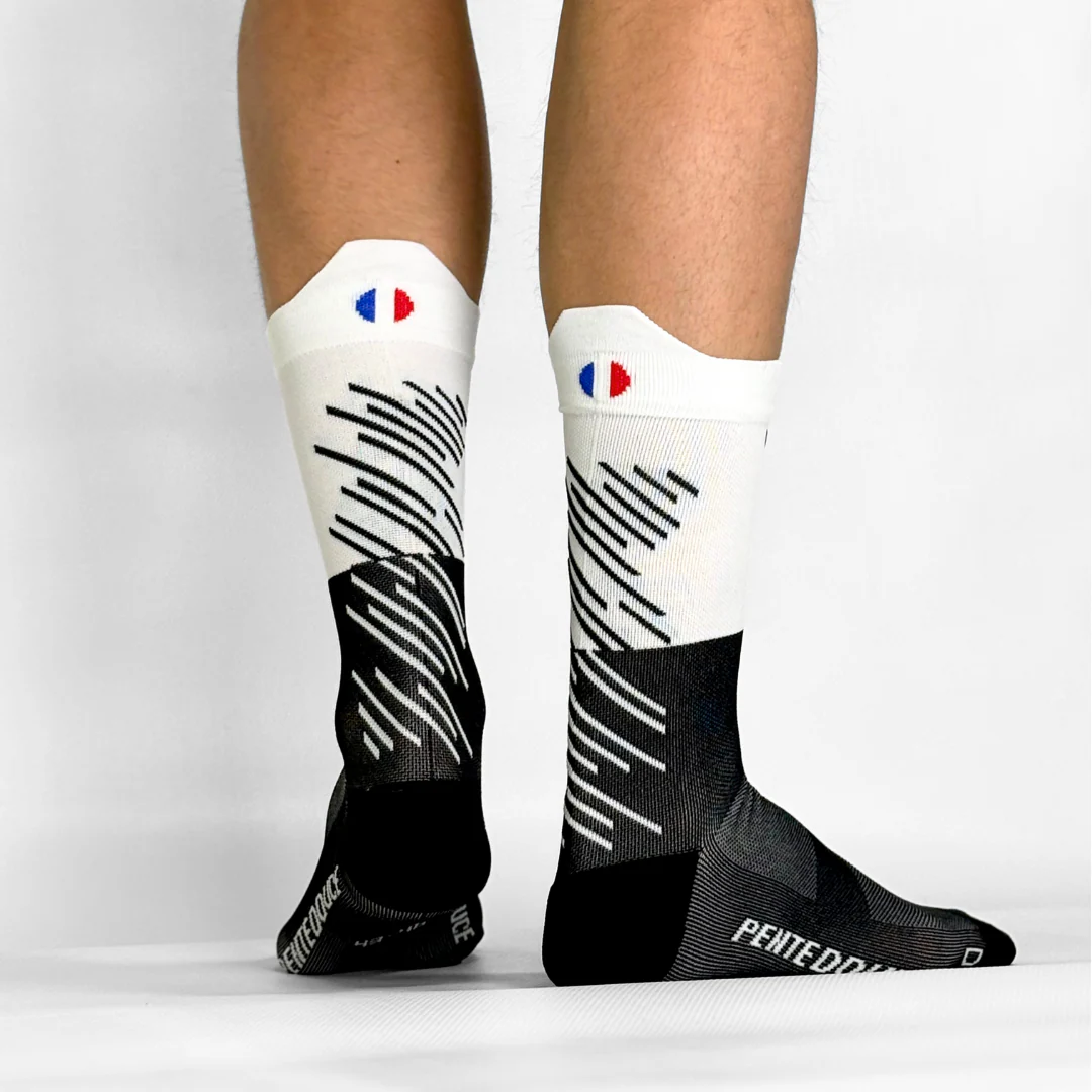 🧦 Une paire de chaussettes techniques : respirantes, légères et fabriquées en France pour un maintien parfait.