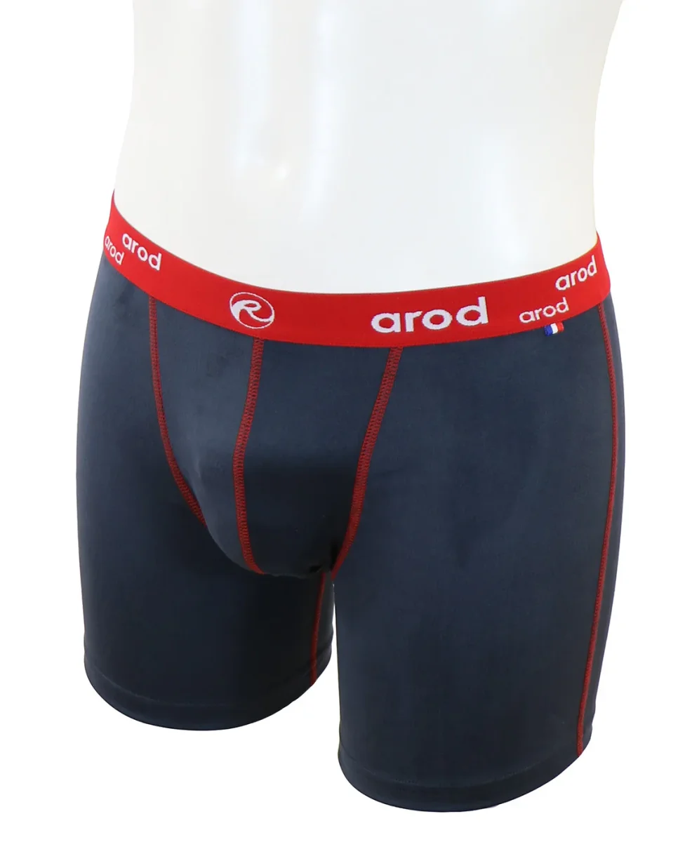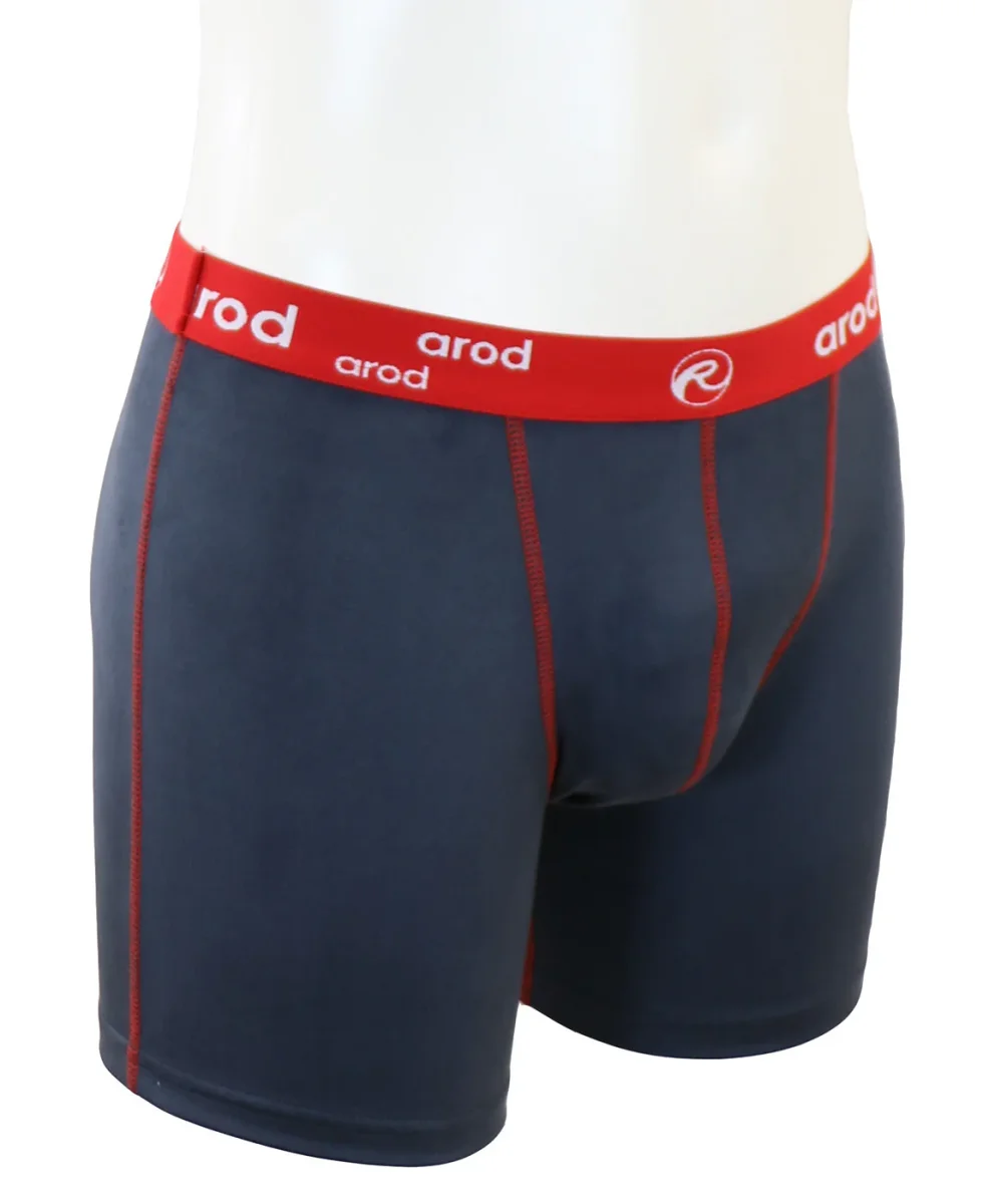 boxer long homme coutures plates ZIGLON ardoise et rouge