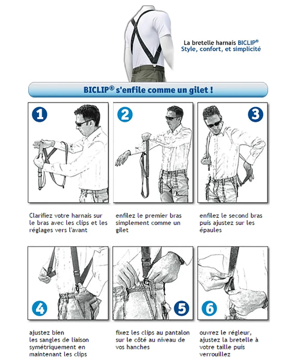 Bretelles harnais BICLIP® Coloris rayé noir, pour associer l’élégance au côté pratique de ces bretelles.Seulement 2 pinces sur les côtés en supprimant les gênes avant et arrière.Redécouvrez ainsi une parfaite aisance de mouvements avec vos vêtements bien tenus. La bretelle n’est plus seulement réservée aux séniors, BICLIP® en rajeuni l’image et l’usage !Fabriqué en France.Brevet […]