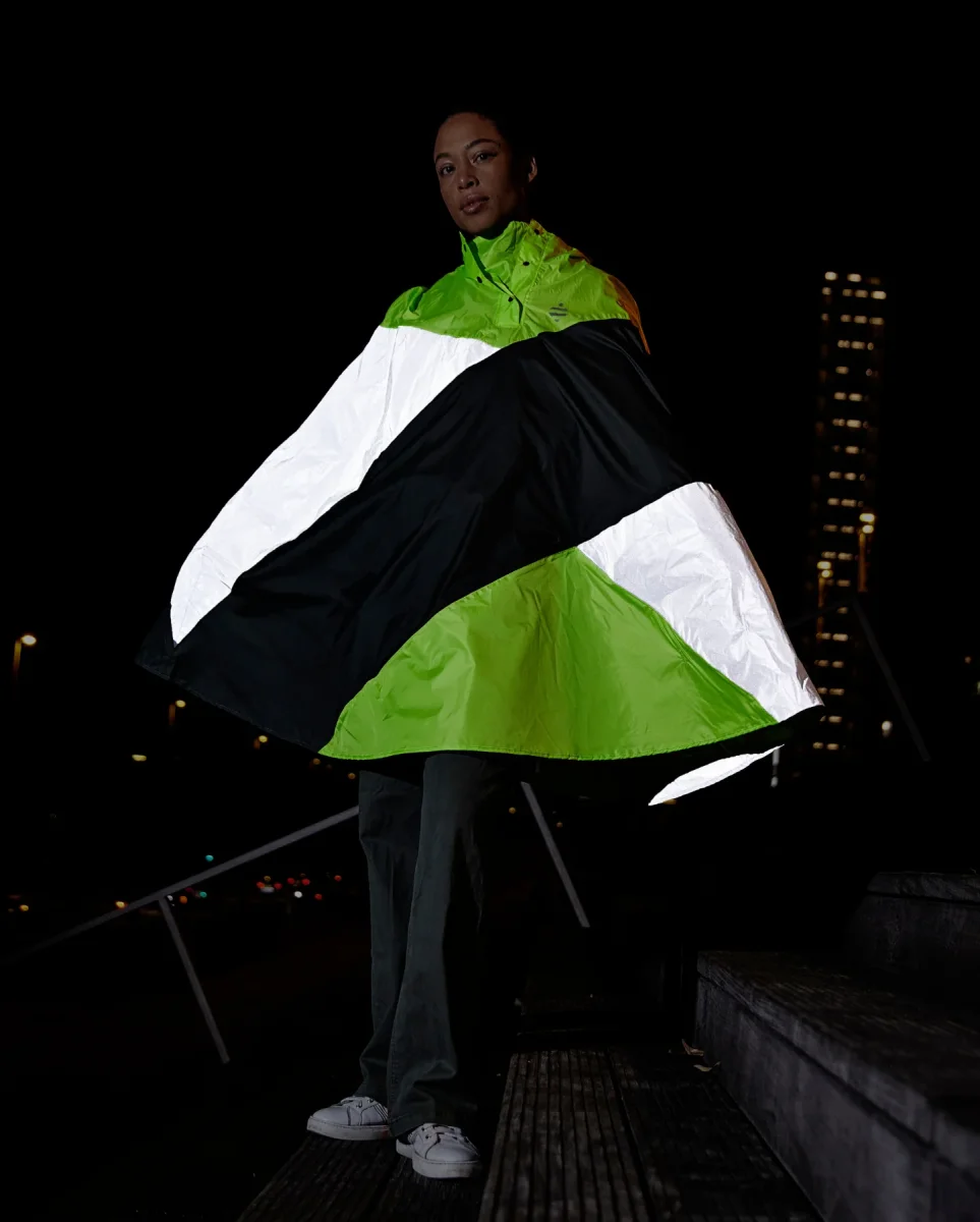 Roulez au sec avec cette cape de pluie 100% imperméable. Jour et nuit, vous serez en sécurité grâce à ses capacités fluorescentes et réfléchissantes vous assurant une visibilité à plus de 350m. Compacte, elle se replie dans sa poche.