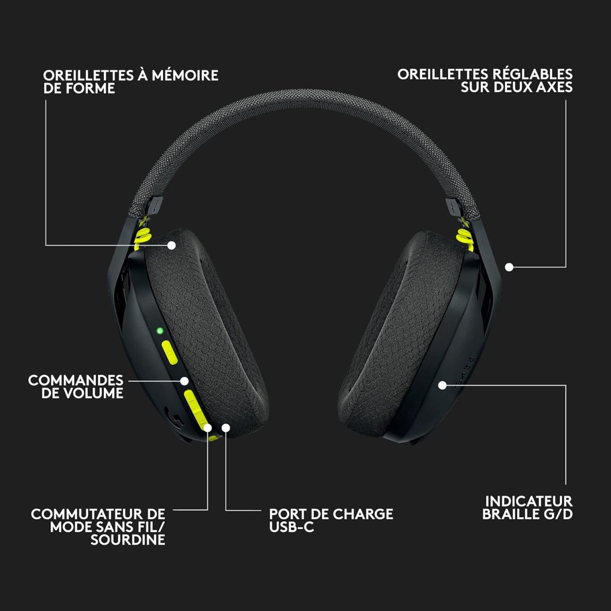 Conçu pour le Confort : Le casque G435 est portable pour de nombreuses personnes, mais il est spécialement conçu pour les jeunes joueurs. Il est équipé de coussinets à mémoire de forme et ajusté pour les plus petites têtes. Le confort est essentiel pour des heures de jeu sans contrainte 🎮.