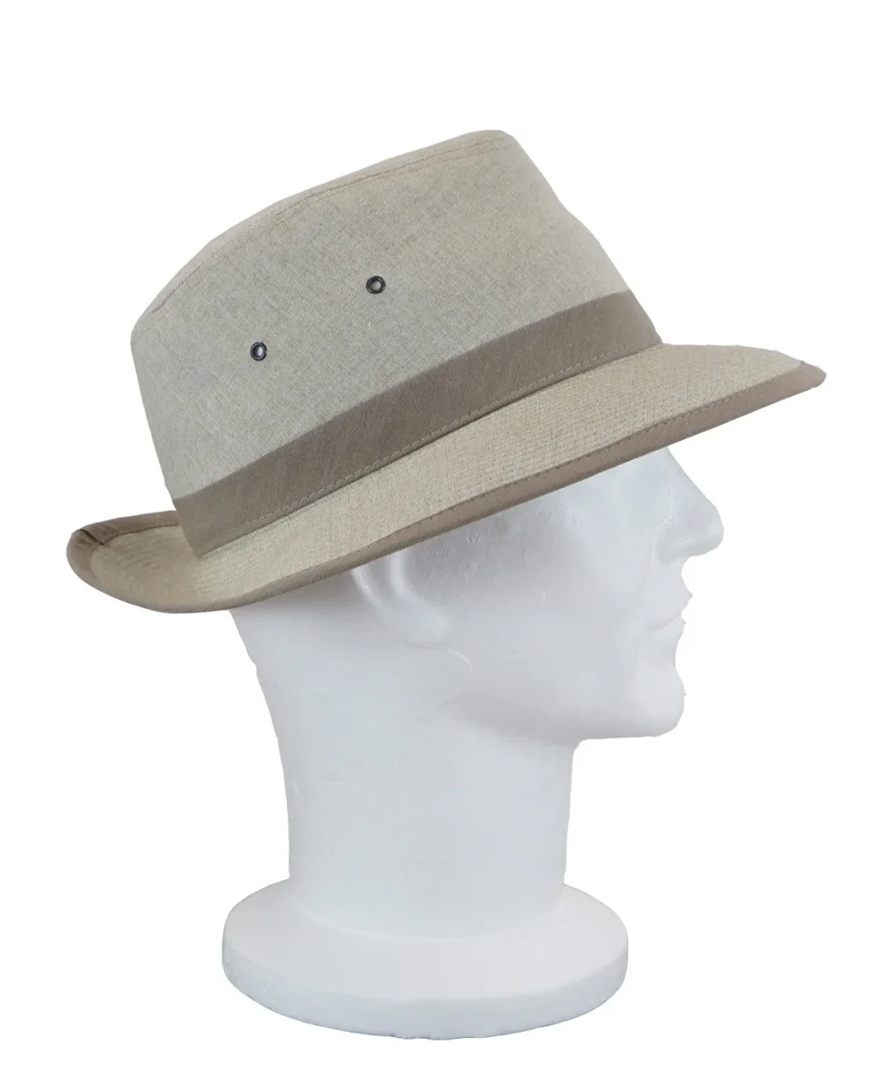 Facilement roulable, cet élégant chapeau se plie dans votre sac ou votre valise.