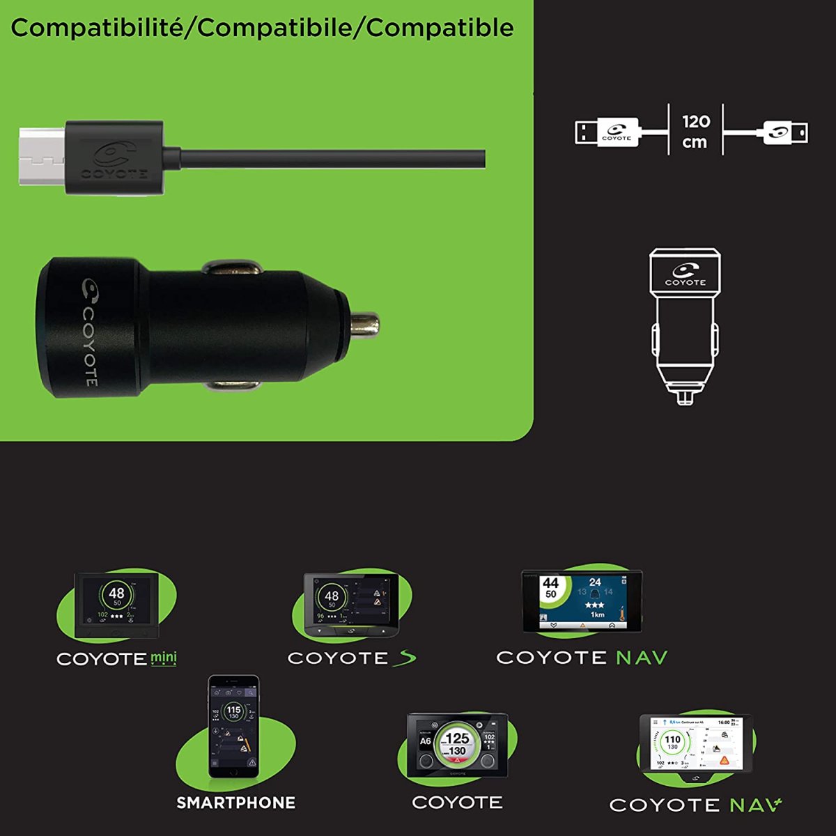 Compatibilité supplémentaire : GPS Coyote mini, S, NAV, NAV+