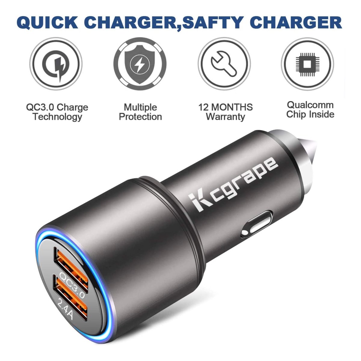 Notre Chargeur pour voiture de la marque KCGrape est quatre fois plus rapide qu’un chargeur pour smartphone standard et son revêtement métallique le rend résistant aux chutes et esthétique ❤️.