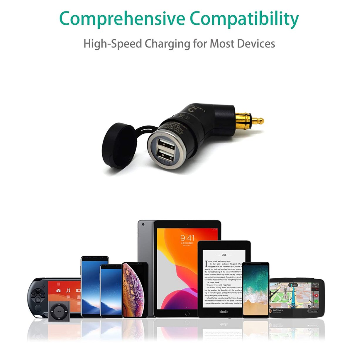 Notre Chargeur se branchant dans une moto de la marque Cliff Top DIN (Hella) a un design sobre et efficace permettant de recharger 2 téléphones portables à une vitesse maximum de 3.3 ampères totale ❤️.