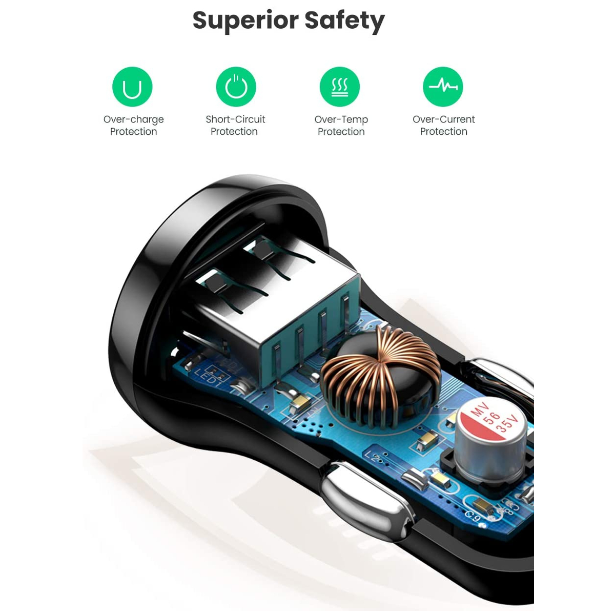 Notre Chargeur pour voiture de la marque Ugreen a une puissance de 24 watts et deux ports USB-A. Il recharge donc jusqu’à 2 smartphones à haute vitesse et est en moyenne 4 fois plus rapide qu’un chargeur classique ❤️.