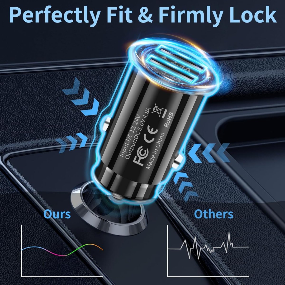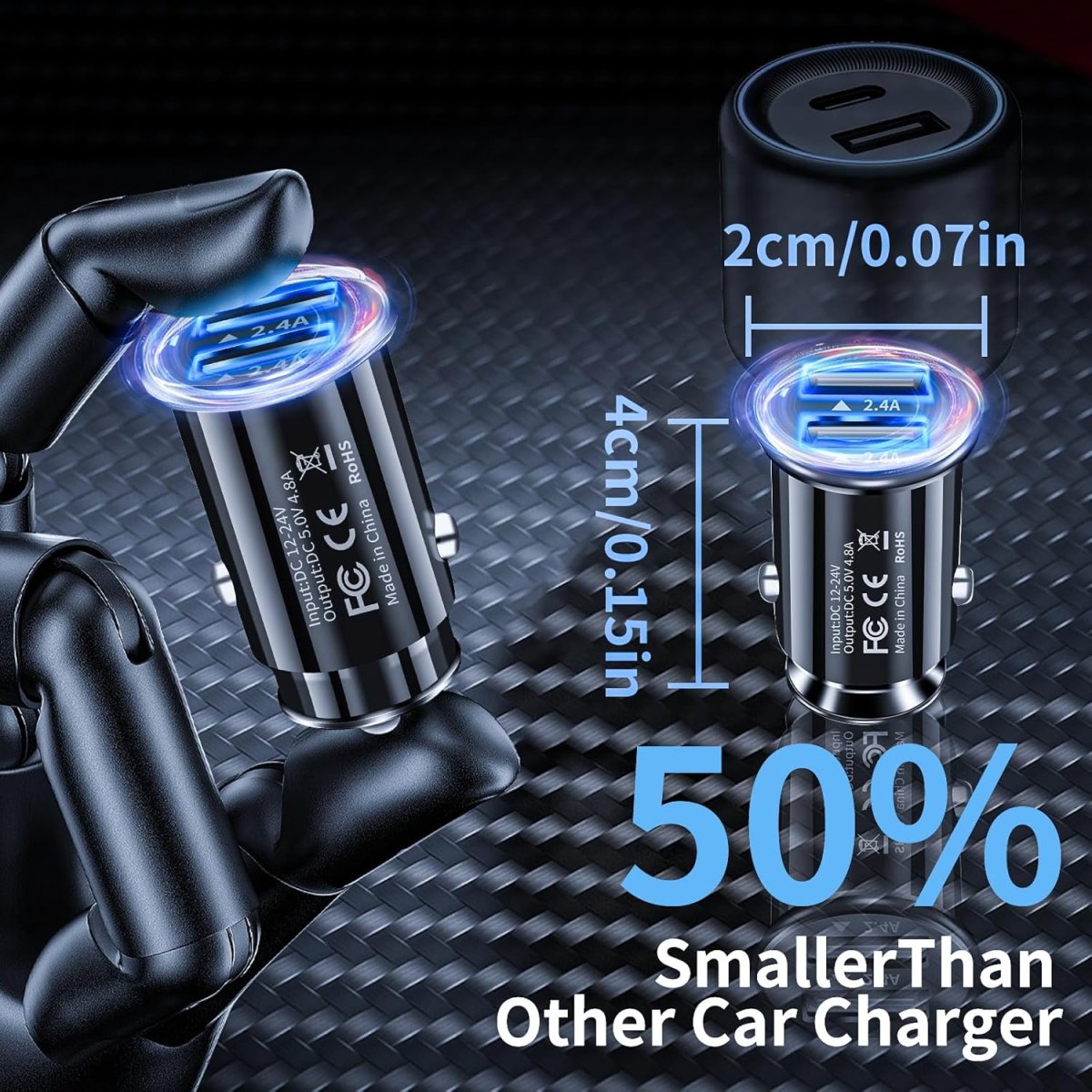 Avec son format mini et son design noir raffiné, notre prise allume-cigare USB s’intègre parfaitement dans l’intérieur de votre voiture. Environ 50 % plus petit qu’un chargeur classique, il est facile à insérer, à retirer et à transporter. Sa compacité permet une utilisation discrète tout en gardant un style sobre et moderne.