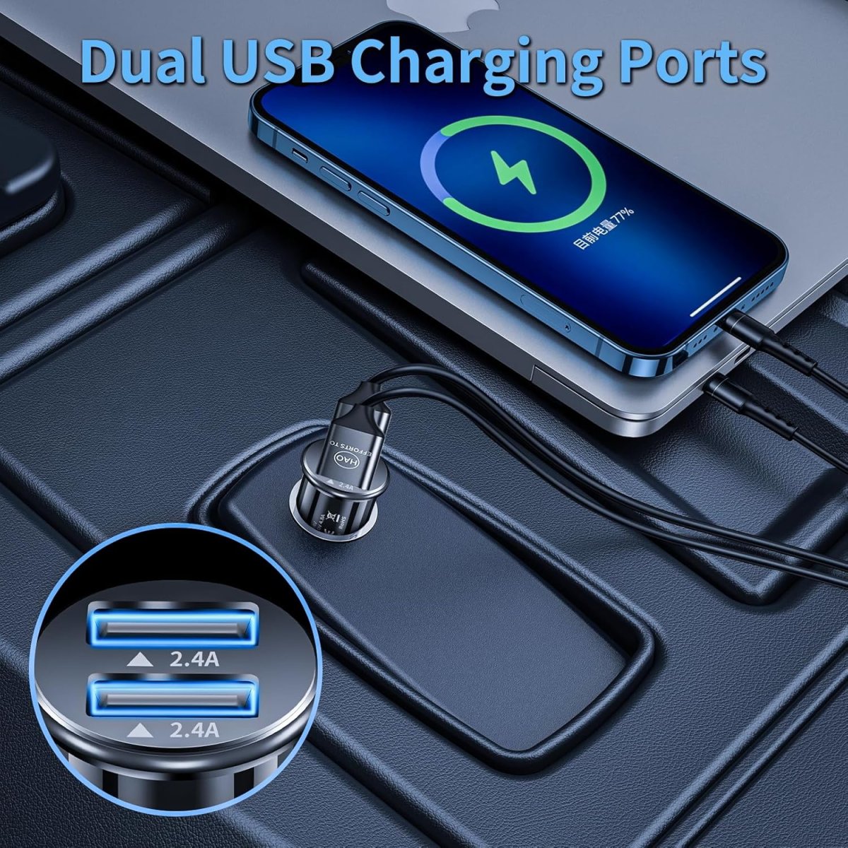 - Puissance totale de 24 W avec 2 ports USB
