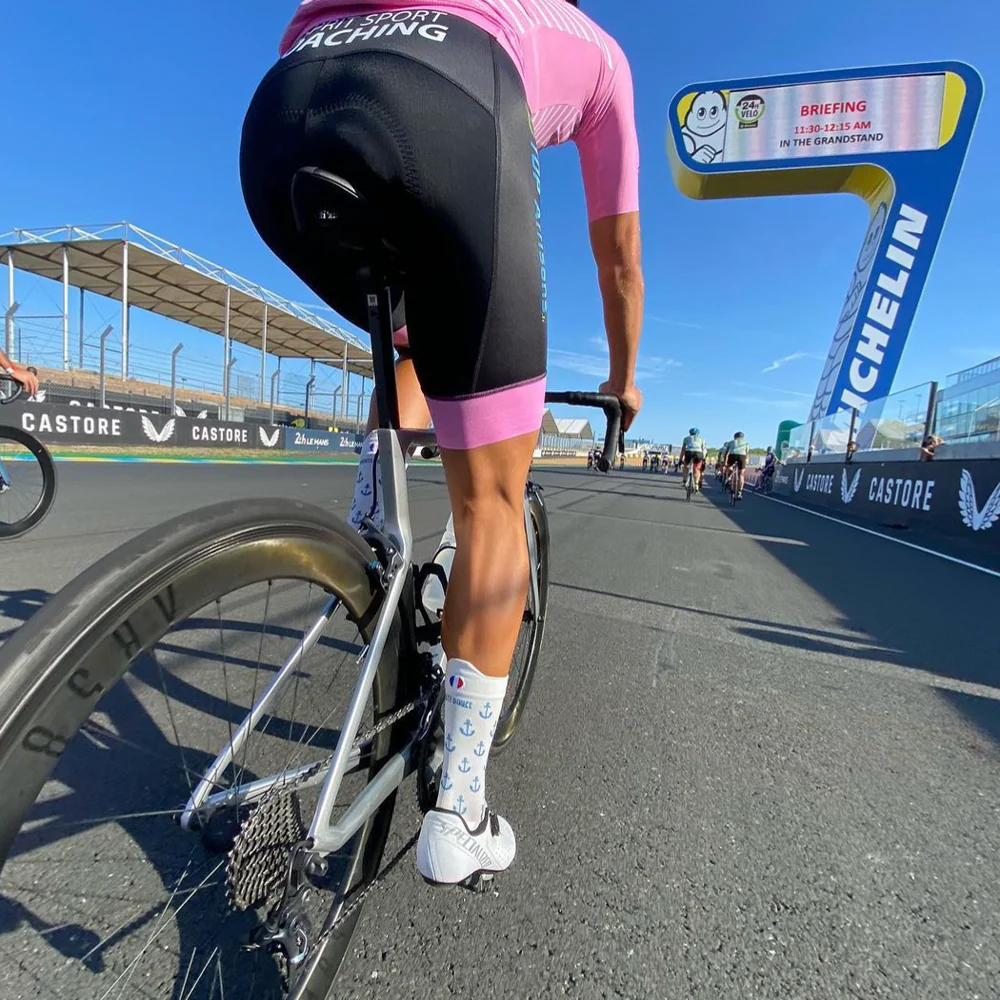 La Blanche à ancres, notre paire de chaussette de cyclisme en quête sorties sur la côte.