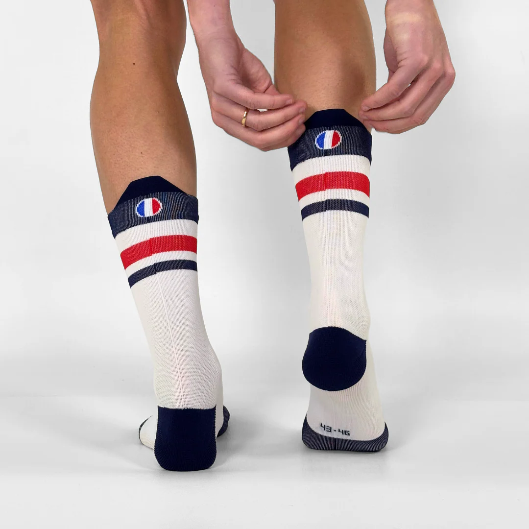 La Bleu Blanc Rouge, notre paire de chaussette de cyclisme iconique.