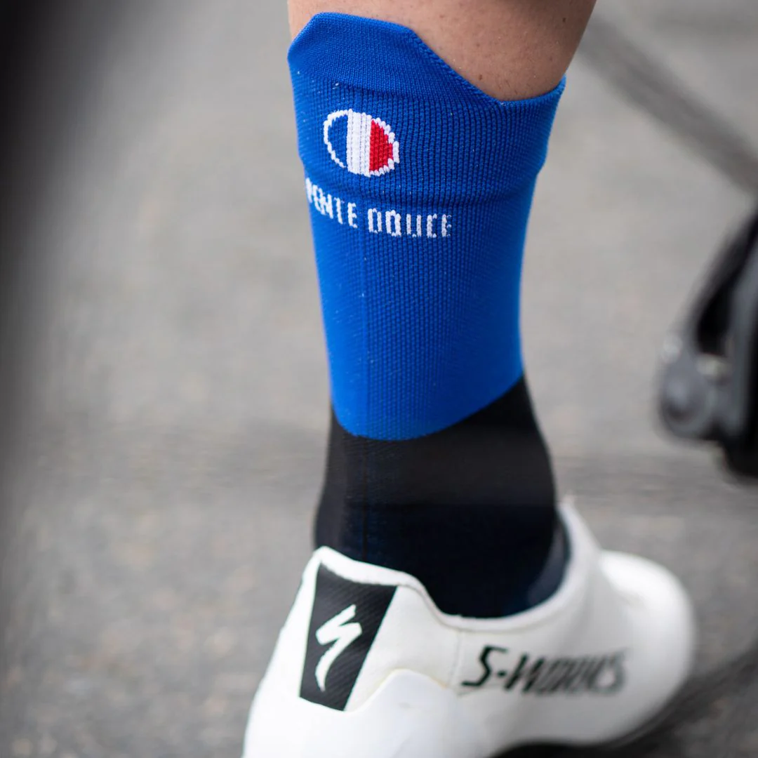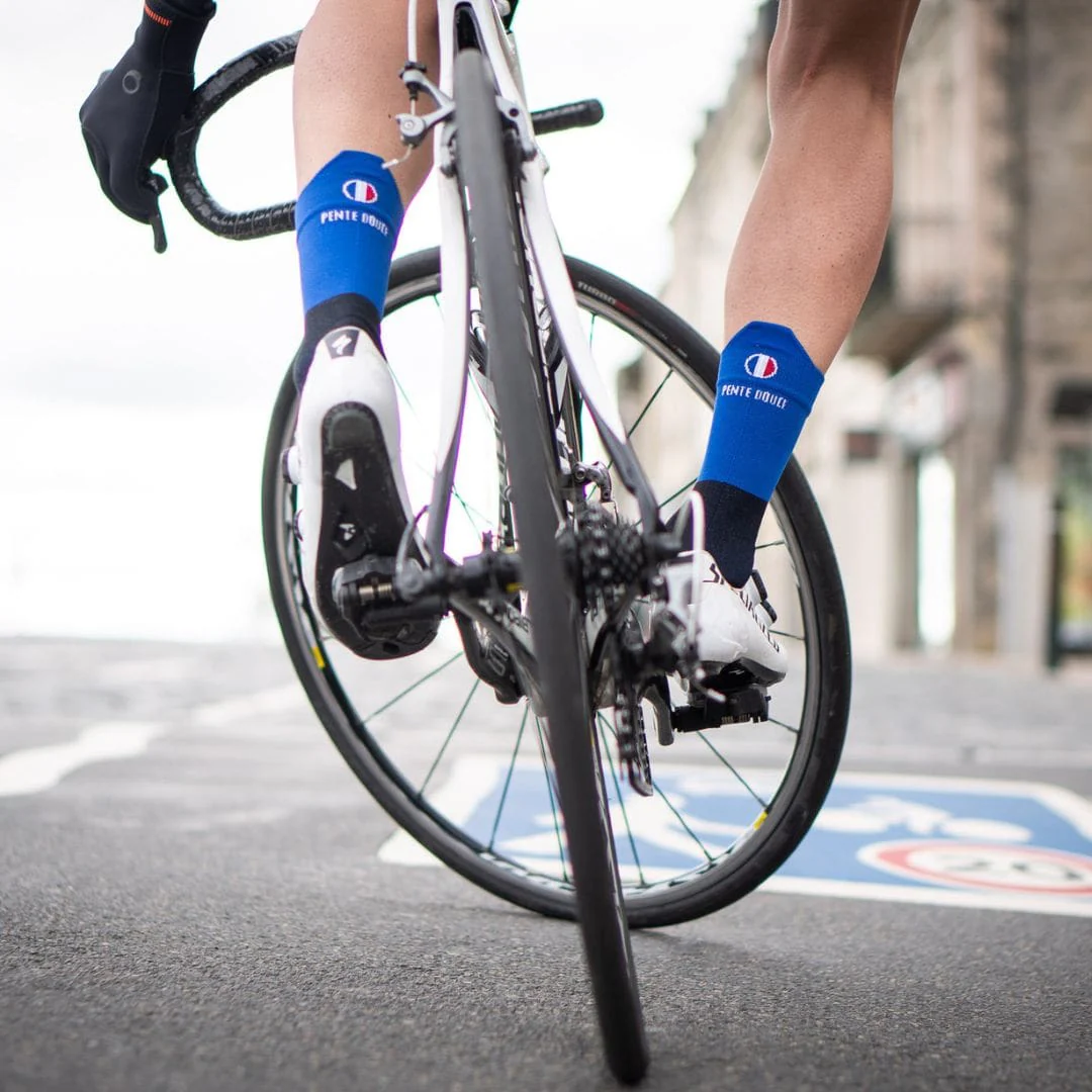 La Bleu Royal et Noir, notre paire de chaussette de cyclisme sobre et élégante.