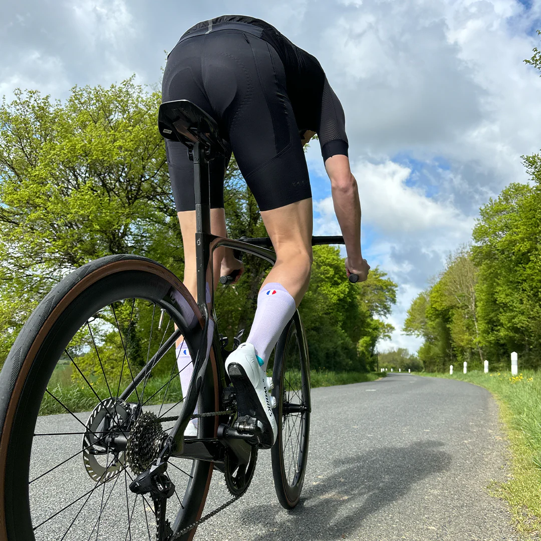 La Lila, notre paire de chaussette de cyclisme pleine de soleil. Notre de paire de chaussettes de cyclisme fabriquée à partir de polyamide recyclé, allie technicité et engagement environnemental. Leur tricotage 3D assure un ajustement ergonomique parfait et les chaussettes possèdent des renforts talon et pointe de pied pour réduire les frottements pour un confort […]