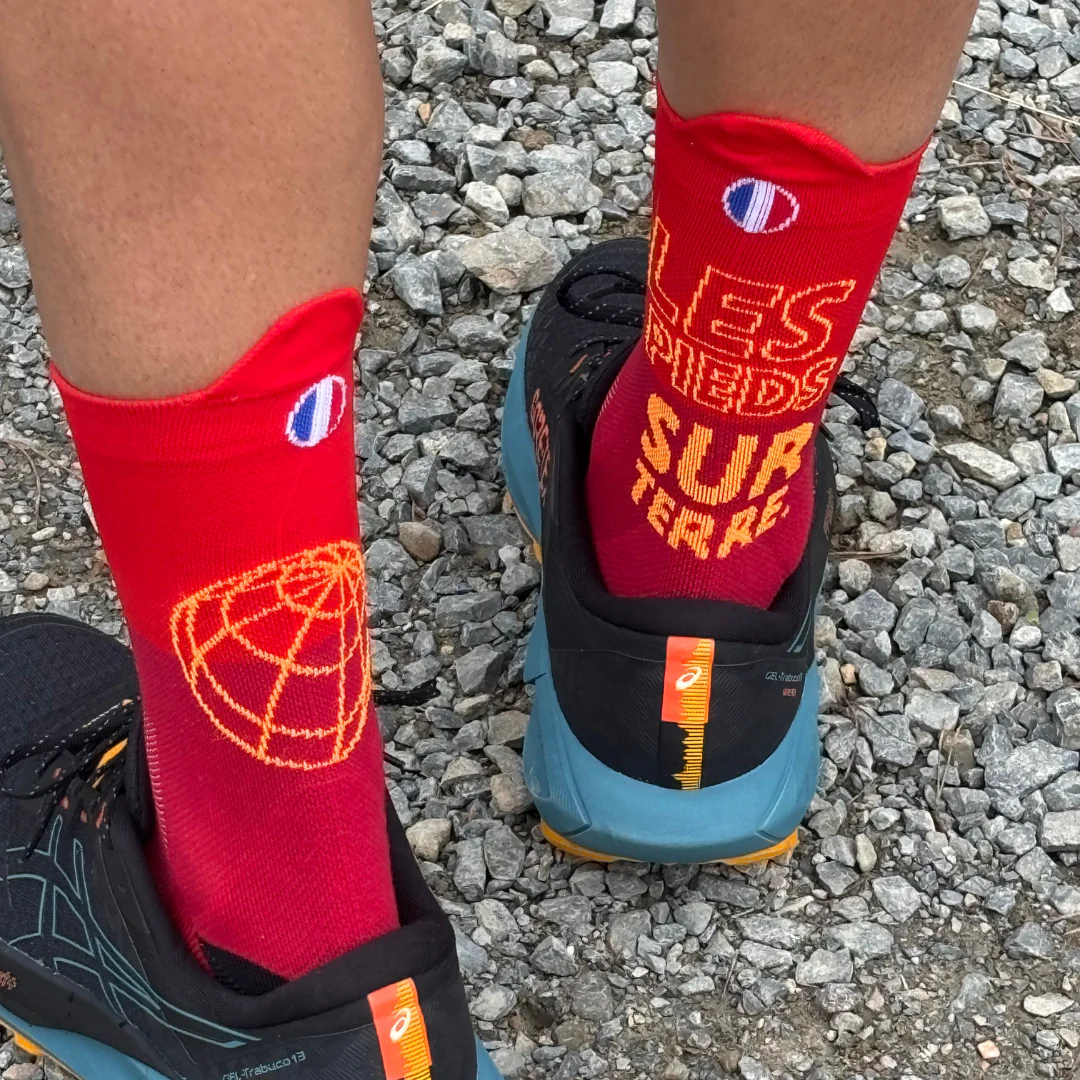 Les chaussettes de trail Pente Douce : respirantes, solides, conçues à partir de fibres recyclées et 100 % fabriquées en France. Maintien, confort et durabilité pour affronter montées et descentes… sans se prendre la tête.