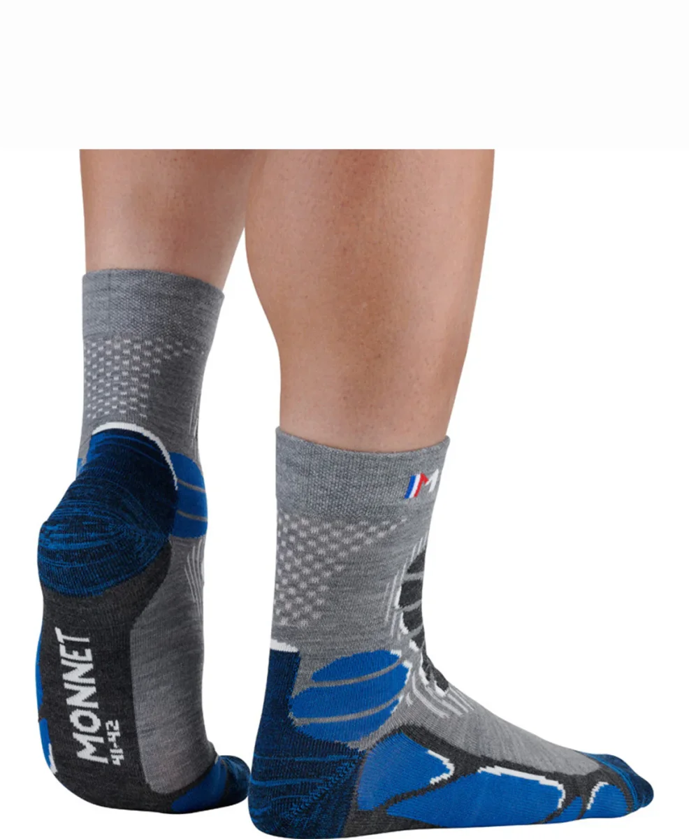 Chaussettes en laine MONNET – MID EXTRA LIGHT – Gris et Bleu
