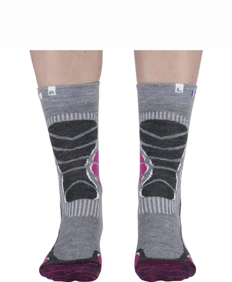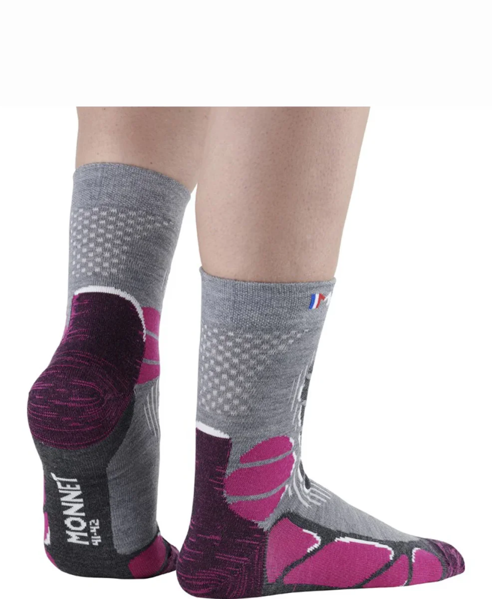 Chaussettes en laine MONNET – MID EXTRA LIGHT – Gris et Rose