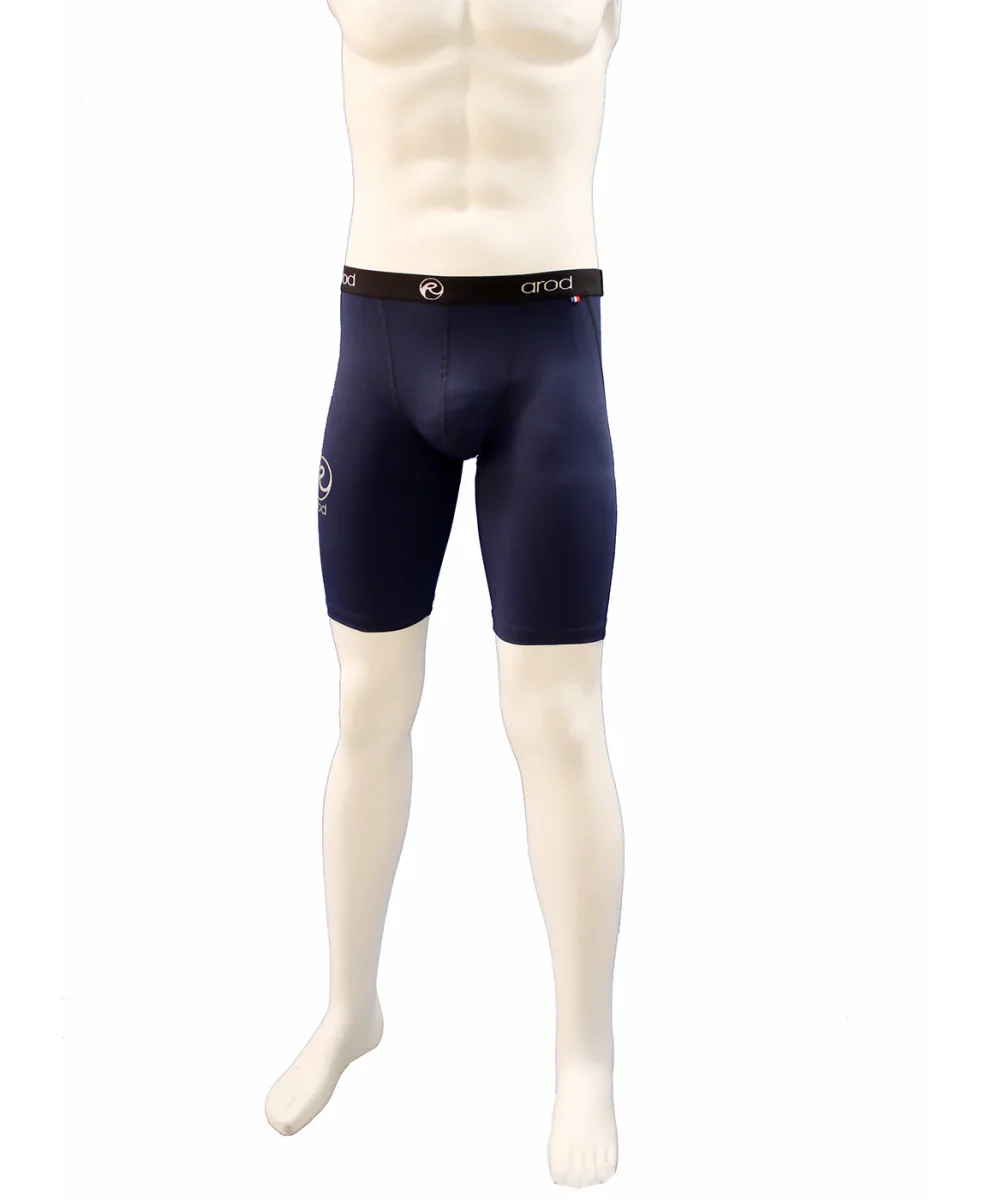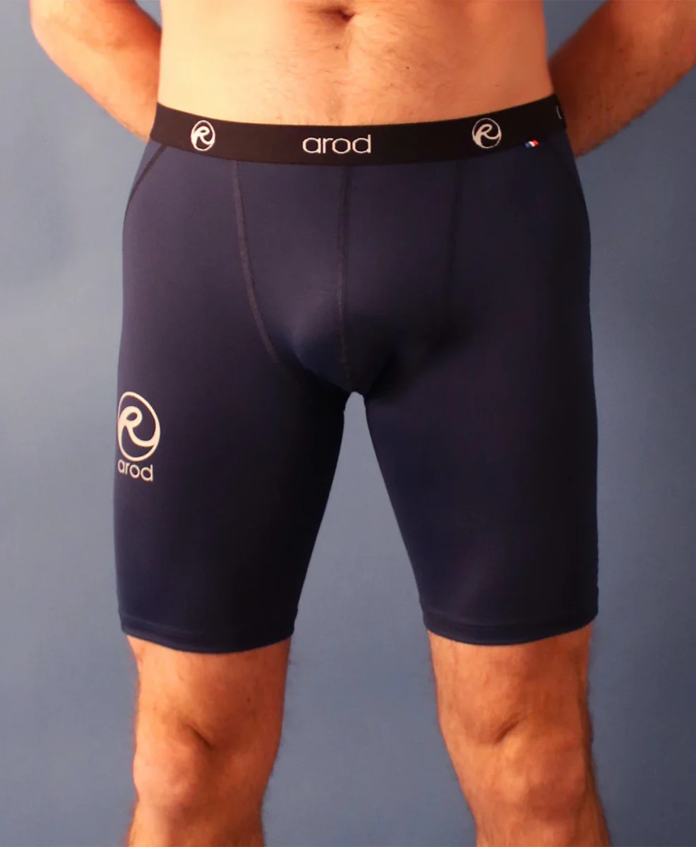 NOUVEAU cuissard technique homme Coloris Marine / Noir. Logo arod coloris argent à la cuisse. Ceinture apparente : ruban élastique Noir. Nouvelle matière, stretch 360° qui, en plus de galber la silhouette, apporte un réel soutien musculaire, réduisant les vibrations et la fatigue. Sa haute technicité en fait une seconde peau parfaite. Coquille formée, pour […]