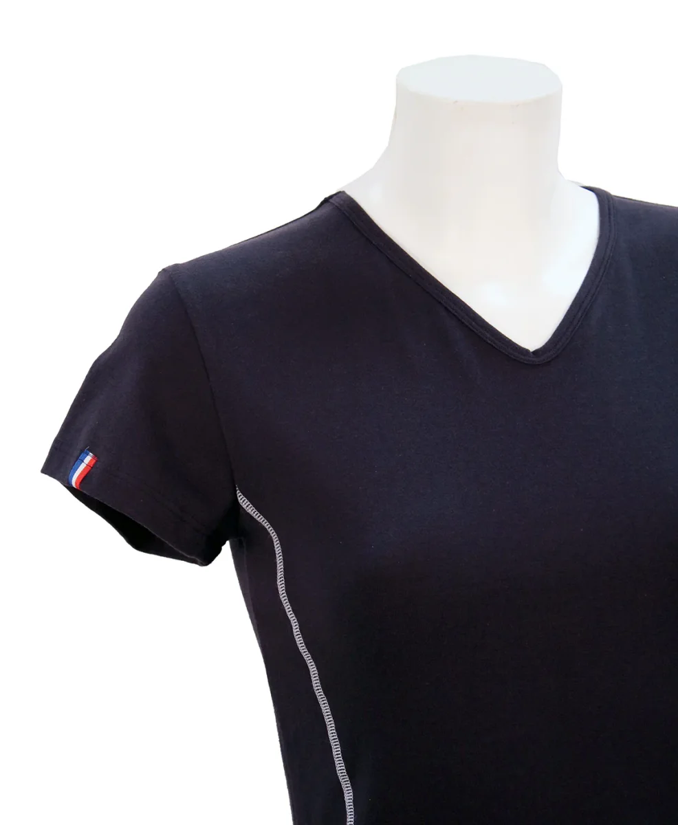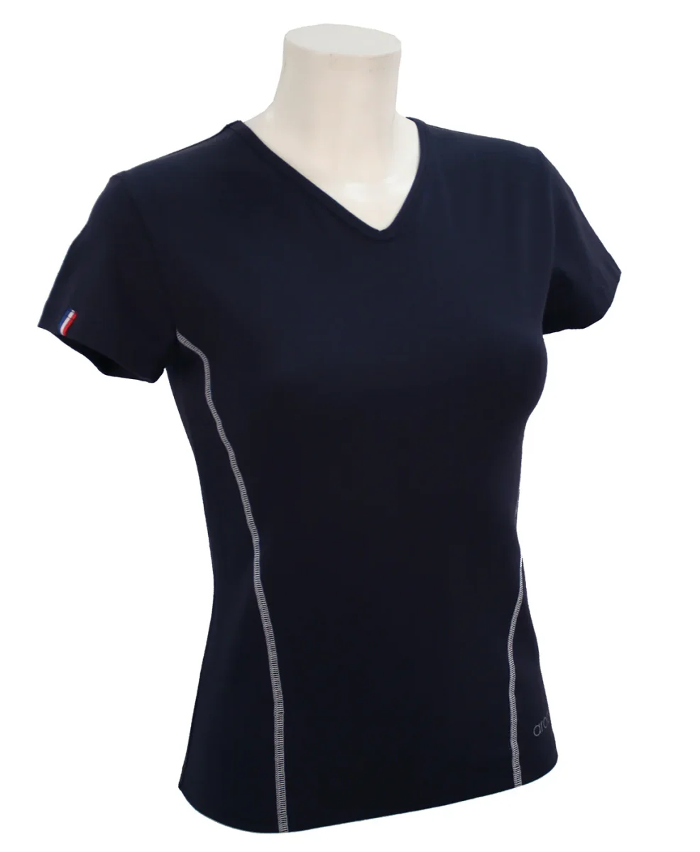 T-shirt stretch femme col V manches courtes. Coloris Marine et coutures plates blanches. Nous avons revisité le modèle WIIT, un grand classique de la collection femme arod, pour l’orienter cette fois sur un vêtement plus prêt-à-porter. Pour cela, nous avons sélectionné un tissu en coton BIO et élasthanne (certifié GOTS : le meilleur du coton […]