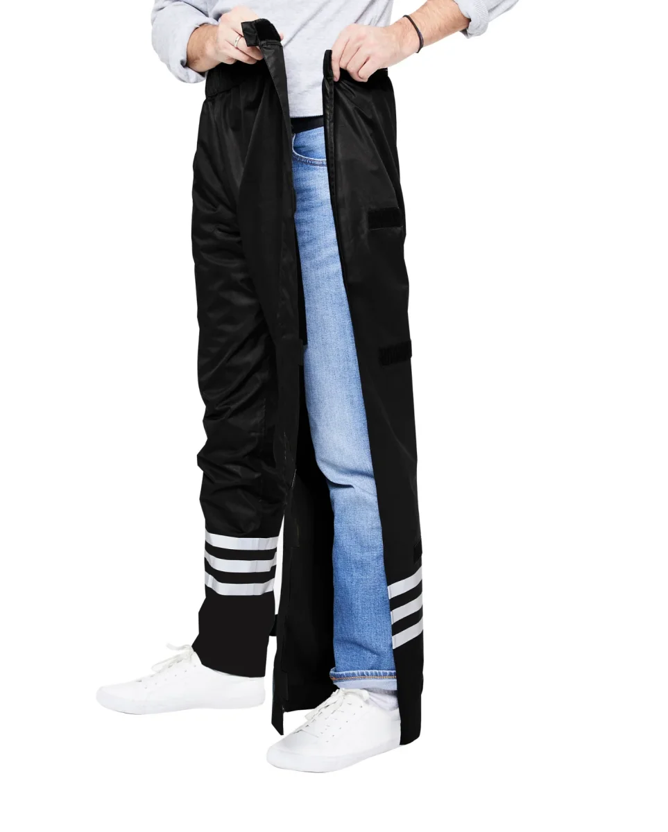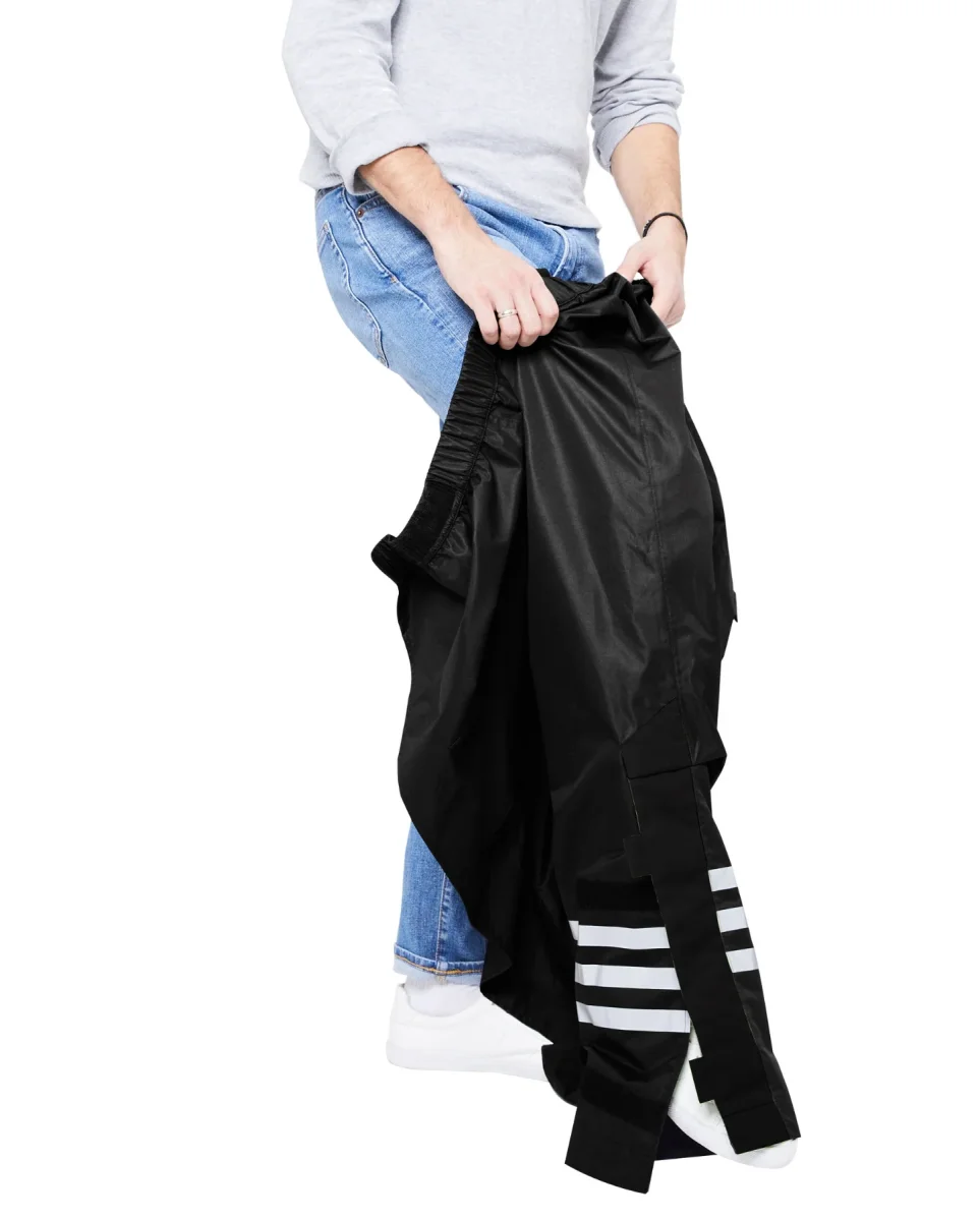 Pratique, il s’enfile en un clin d’oeil par-dessus votre pantalon. Son bord entièrement ouvert et refermable avec des velcros vous évite de jouer les équilibristes.