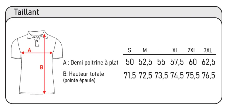 Pour cela, nous avons sélectionné un tissu piqué en 100% coton peigné de 210 g./m2 très agréable au porter.