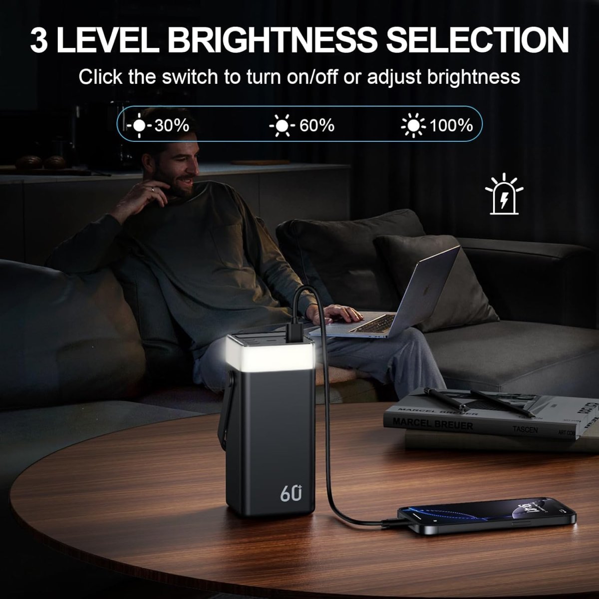 • Capacité massive de 60 000 mAh pour autonomie prolongée