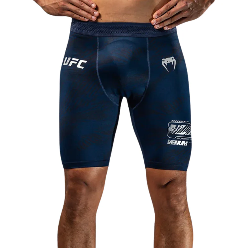 Préparez-vous pour le ring avec les UFC Fusion by Venum Fight Week Vale Tudo Shorts – Oceanic Blue. Conçus pour les athlètes MMA, BJJ et cross-training, ces shorts mi-cuisses allient compression étudiée et liberté de mouvement. Leur tissu technique 75 % polyester / 25 % élasthanne offre un équilibre parfait entre soutien musculaire et flexibilité, tout en favorisant la circulation sanguine pour une meilleure récupération. Dotés d’une ceinture élastique confortable, de coutures renforcées, d’une poche intérieure pour protection, et de logos imprimés de haute qualité, ils sont aussi stylés que performants