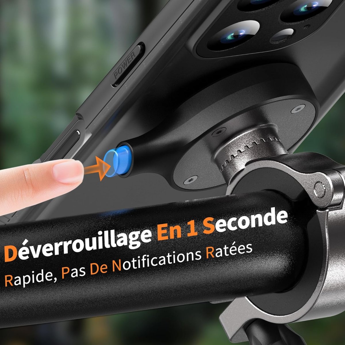 Le système de détachement rapide iPhone 16 Pro Moto permet une manipulation fluide, même d’une seule main. Grâce à cette fonctionnalité, votre smartphone reste accessible sans compromettre votre sécurité. Le design ergonomique, associé à un bouton intuitif, assure une opération simple et rapide, réduisant le risque de chute. Chaque trajet devient ainsi plus confortable, pratique et sécurisé.