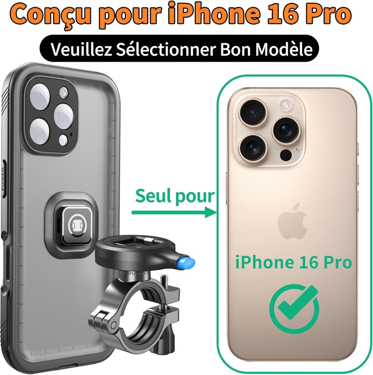 Support iPhone 16 Pro pour guidon de moto, fixation robuste