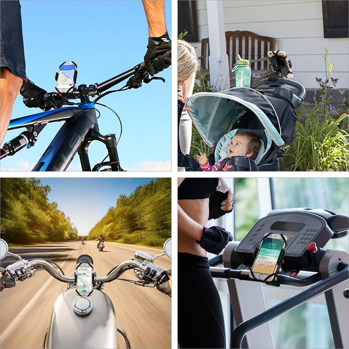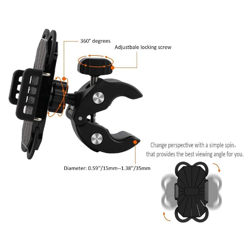 Adapté pour vélos, motos, poussettes, chariots et tapis roulants, ce support s’adapte à divers types de guidons tubulaires. Vous pourrez l’utiliser partout où vous en avez besoin !