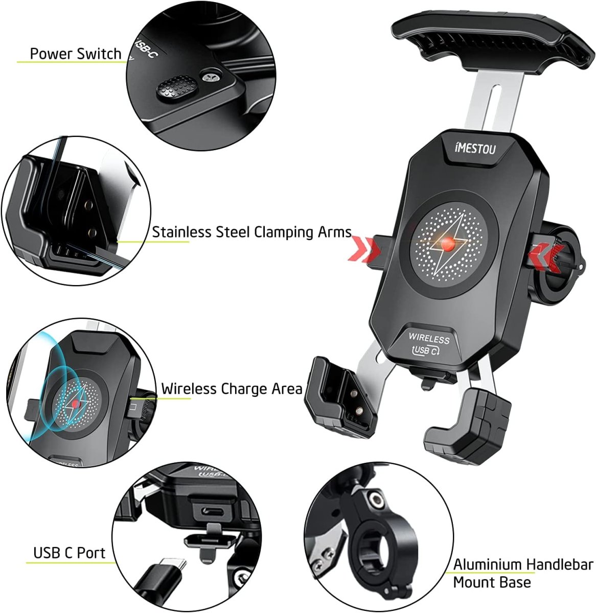 Notre support de téléphone Moto avec chargeur offre deux options de charge : par induction (sans fil) ou via un câble USB-C.