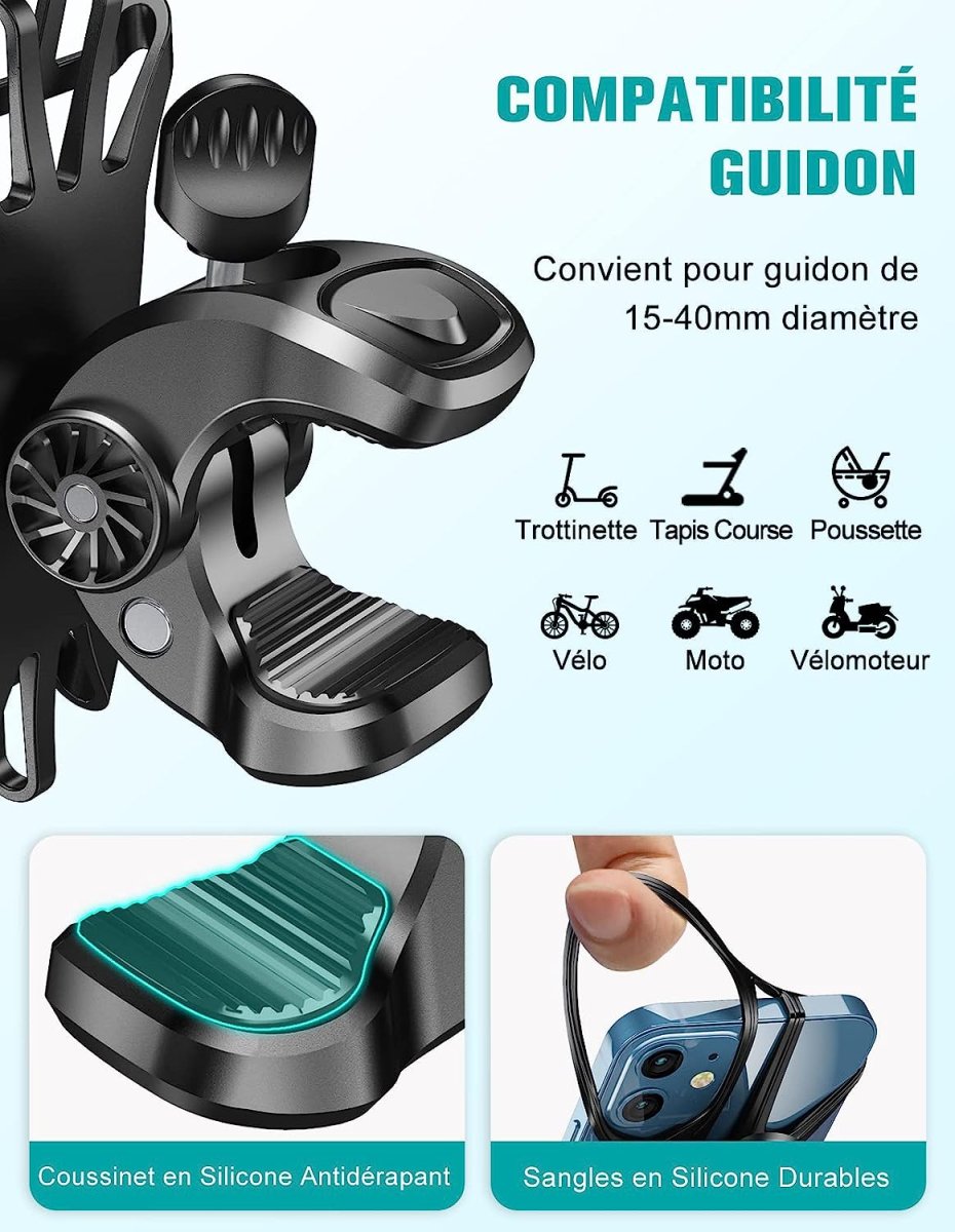 Notre Support pour Smartphone en Silicone convient aussi bien aux motos qu’aux vélos. Il est réfléchi pour absorber tous les chocs et les secousses rencontrées sur les routes les plus ardues 👍.