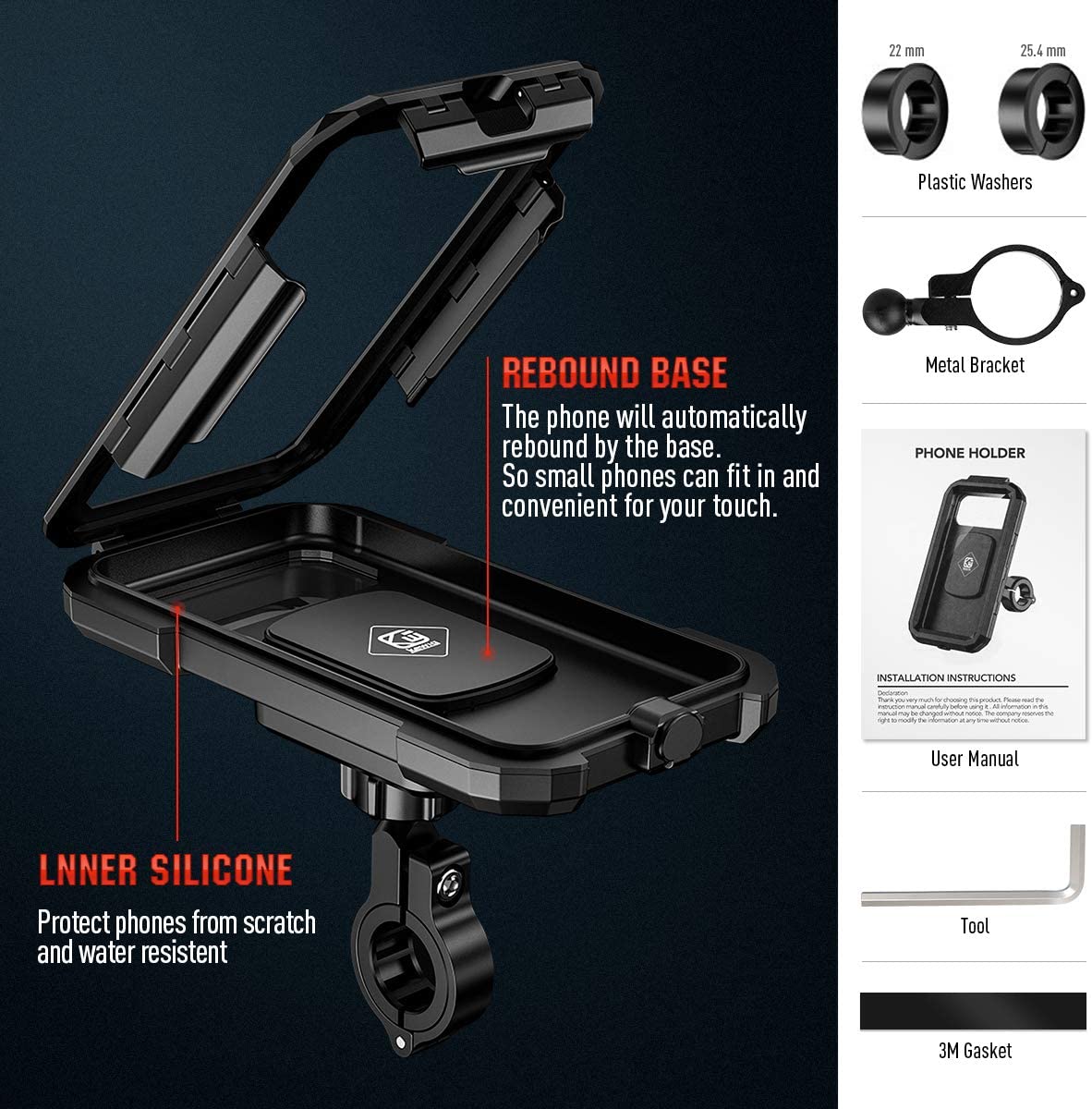 Notre support de téléphone pour Motos / VTT et vélos est conçu à partir d’un PVC solide et résistant offrant une protection complète à votre téléphone. Il réduit les vibrations et les à-coups rencontrés lors du trajet grâce à sa conception intelligente 🔥.